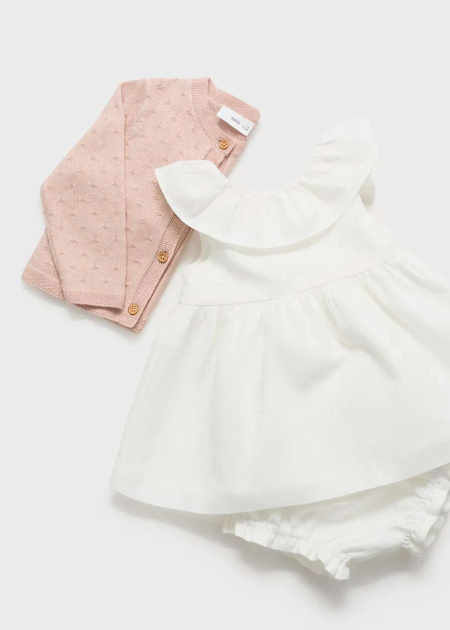 Bawełniana tkanina. Tkanina lniana. Body z kołnierzykiem falbanką. Wiązanie z tyłu. Elastyczna gumka u dołu.