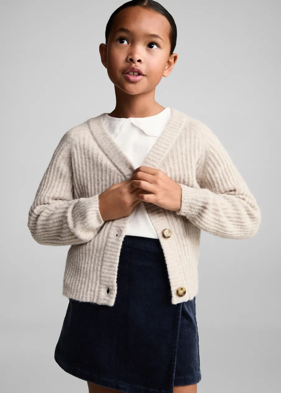 Dzianina. Model prosty. Dekolt V. Długi rękaw. Zapięcie na guziki.