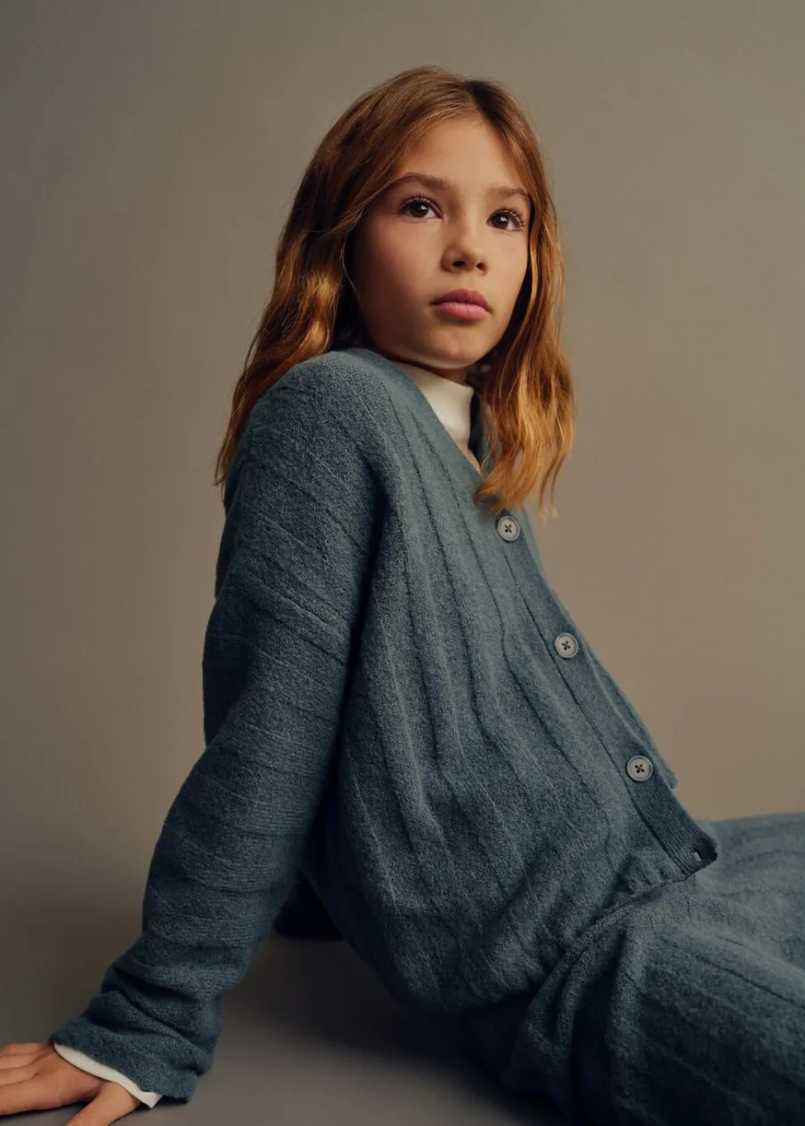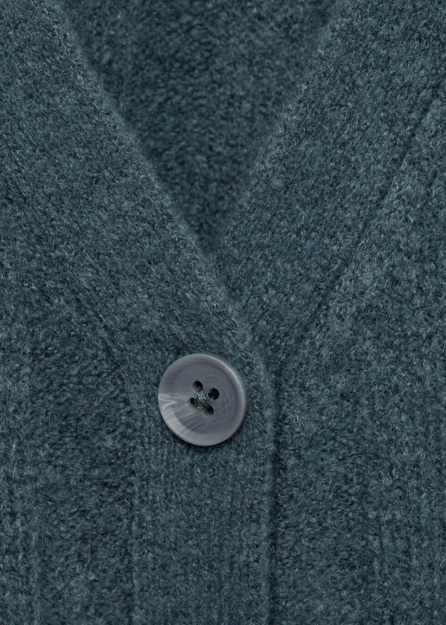 OpisDzianina. Model prosty. Dekolt V. Długi rękaw. Zapięcie na guziki. Total look.