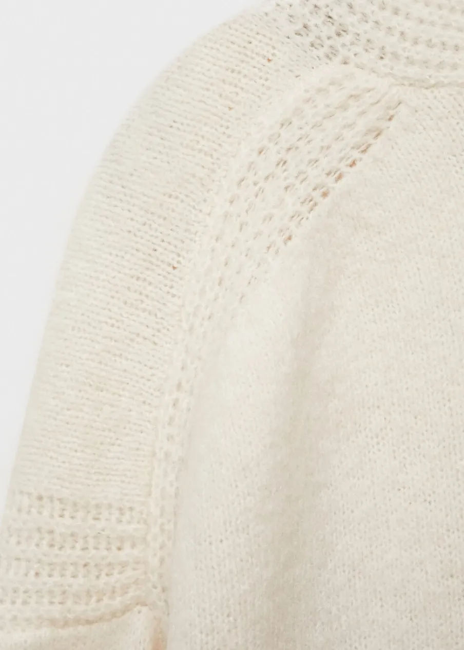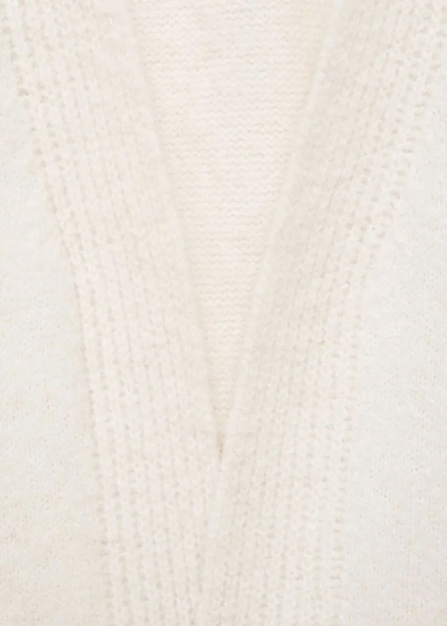 OpisDzianina. Model prosty. Dekolt V. Długi rękaw. Zapięcie z przodu.