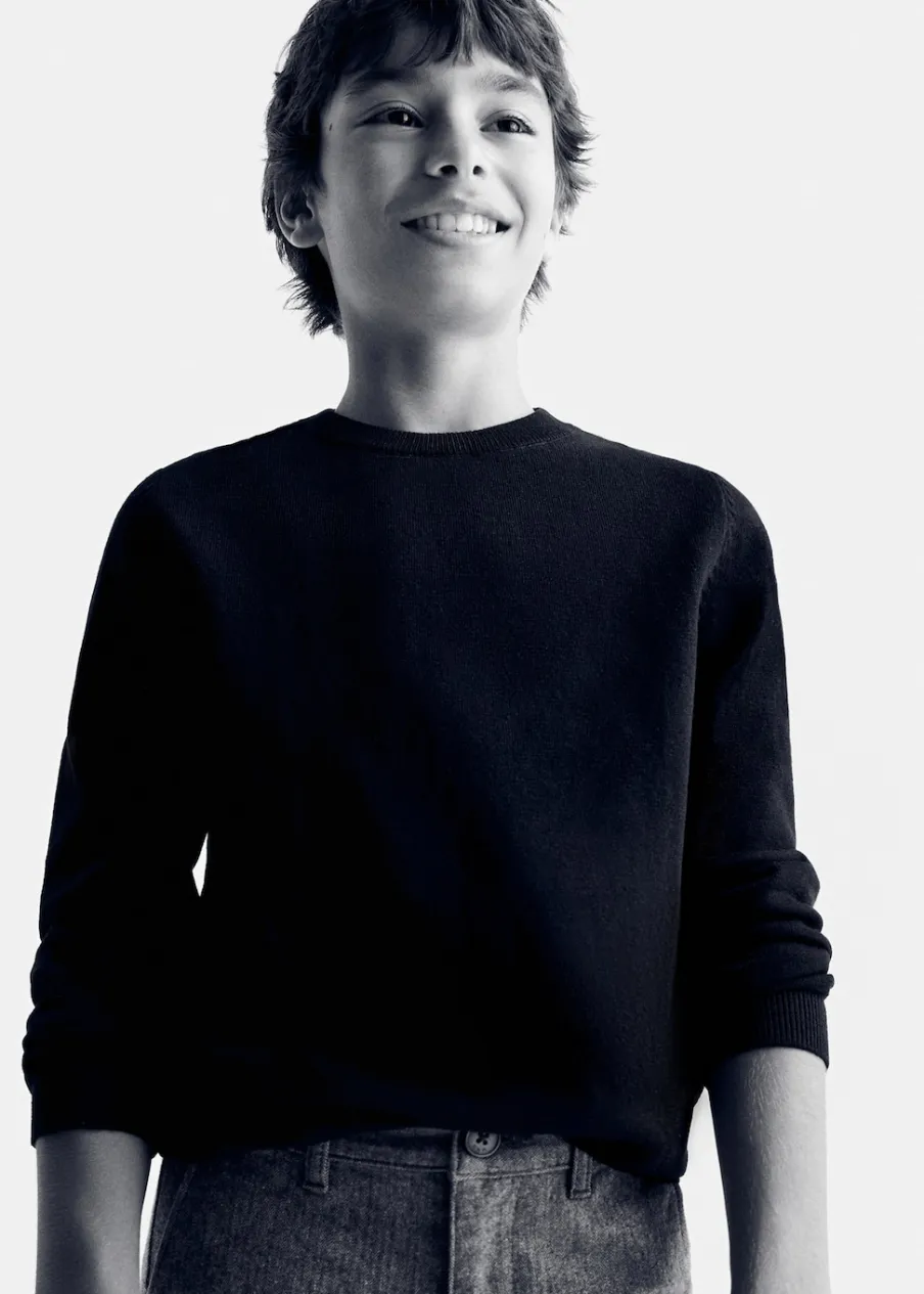 Kolekcja Basics, kolekcja wizytowa, tkanina bawełniana, dzianinowa tkanina, prosty krój, okrągły dekolt, długi rękaw.