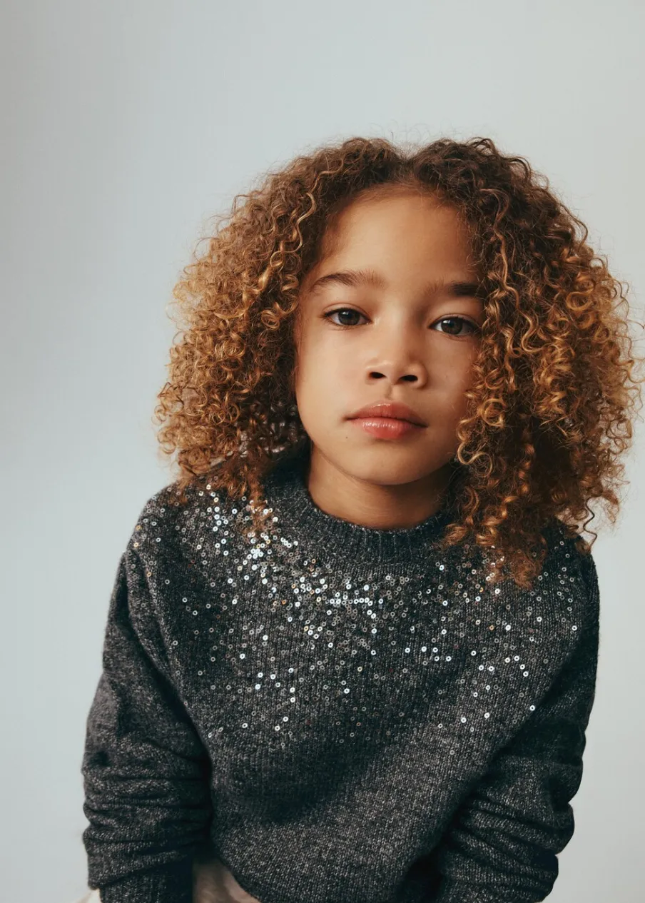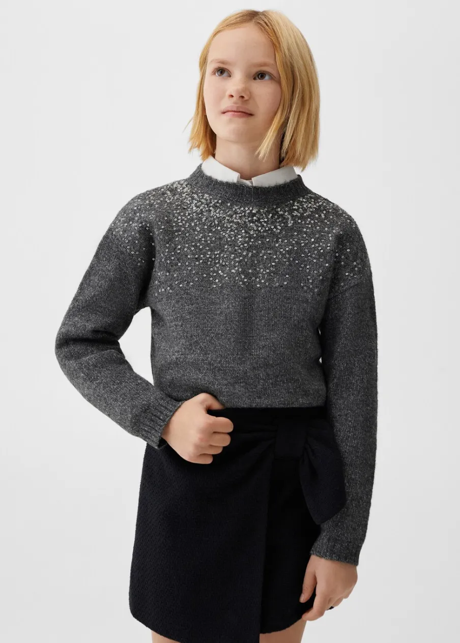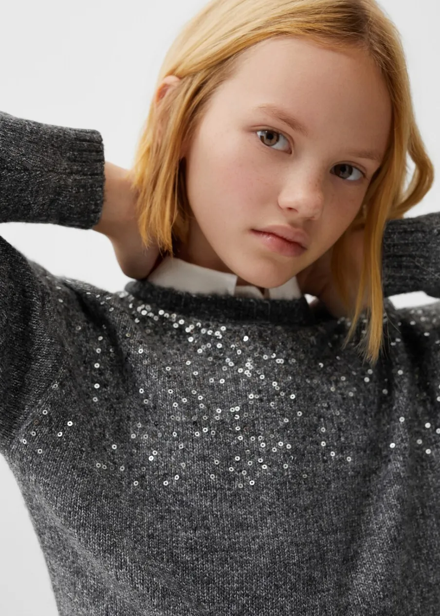 OpisKolekcja wizytowa, kolekcja Bożonarodzeniowa, dzianinowa tkanina, detal z cekinów, model prosty, okrągły dekolt,…