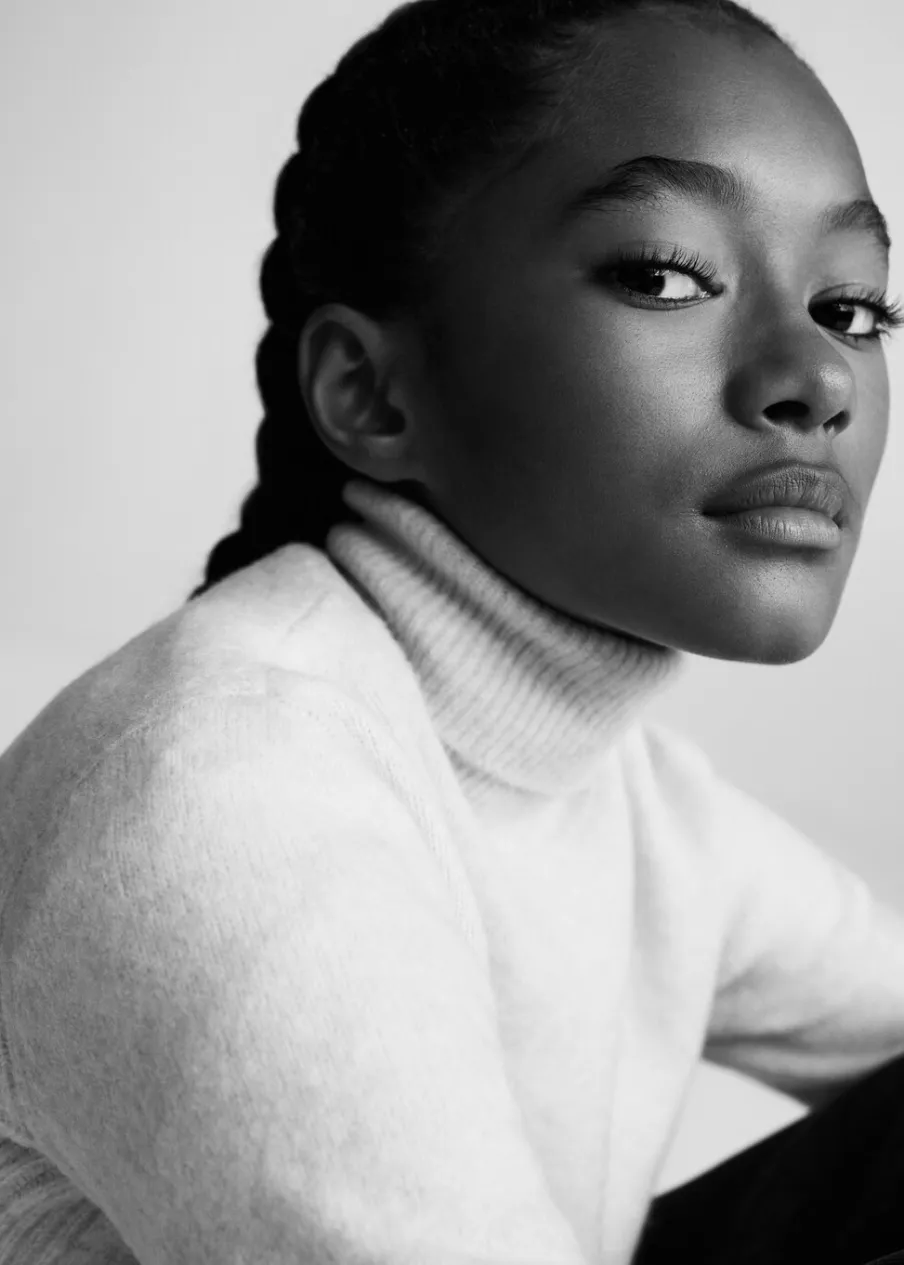 OpisDzianinowa tkanina. Model prosty. Golf. Długi rękaw.