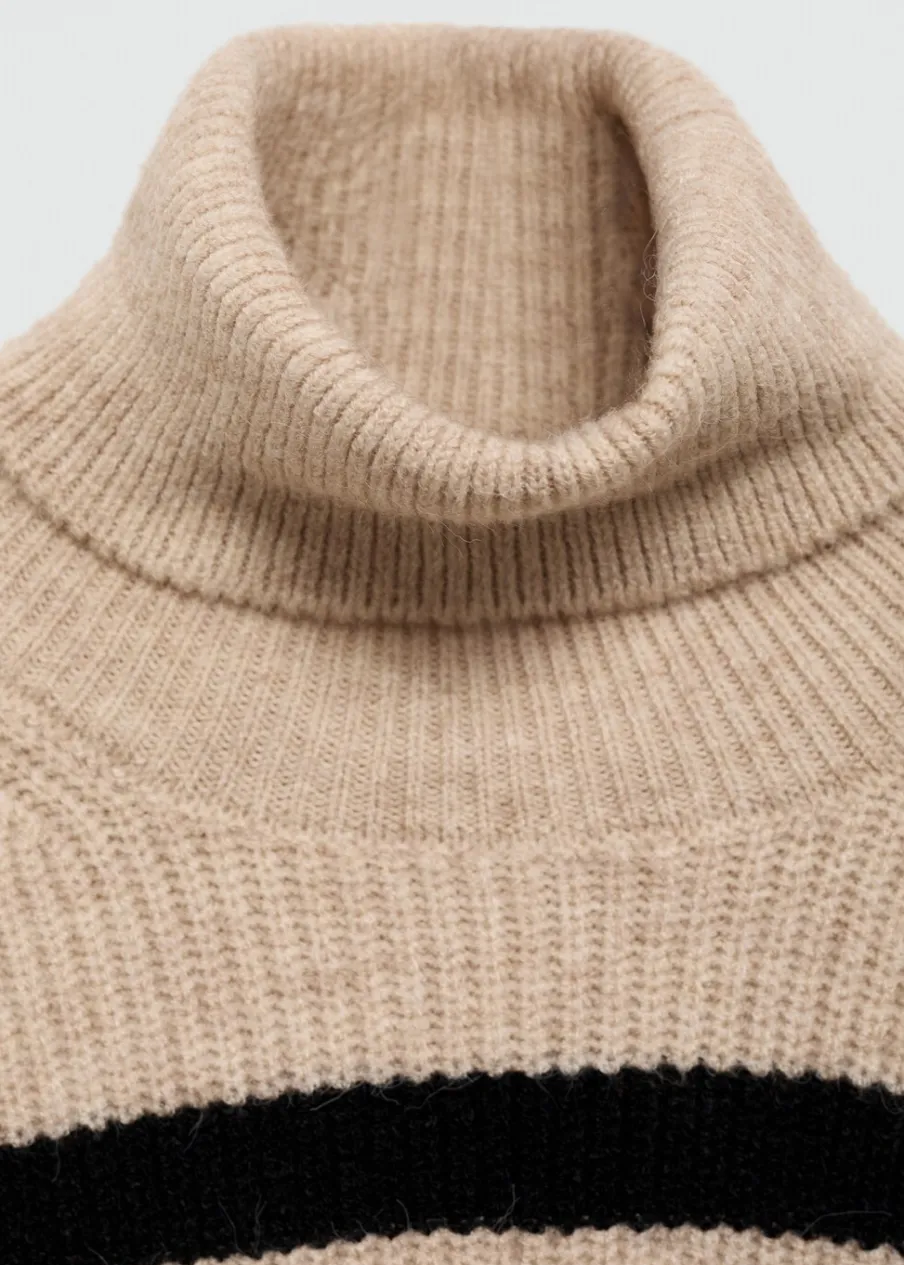 OpisTkanina z grubej dzianiny. Model prosty. Wzór w paski. Golf. Długi rękaw.