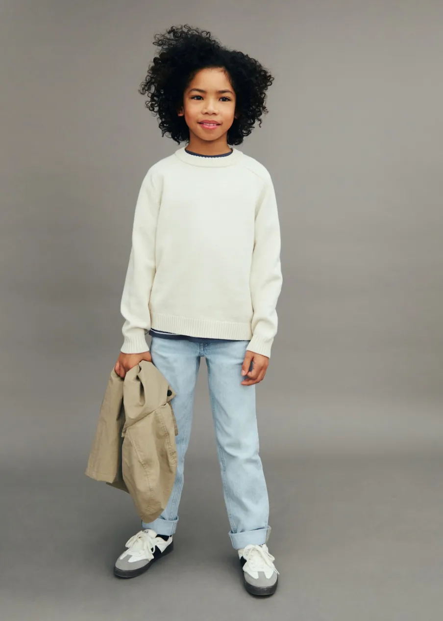 Bawełniana tkanina. Dzianina płaska. Długi rękaw. Okrągły dekolt. Kołnierz, mankiety i dół z prążkowanej dzianiny.