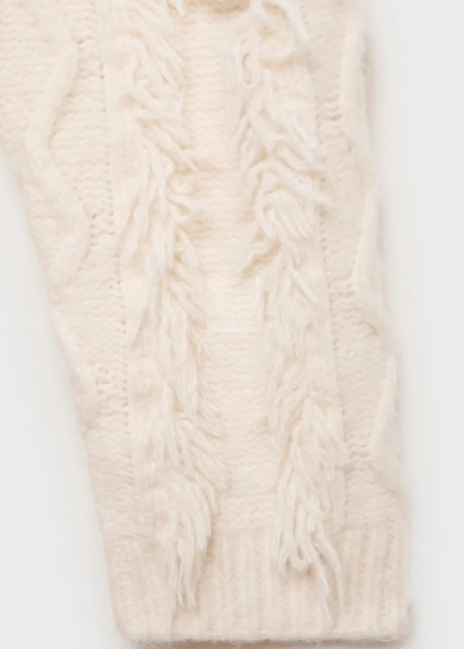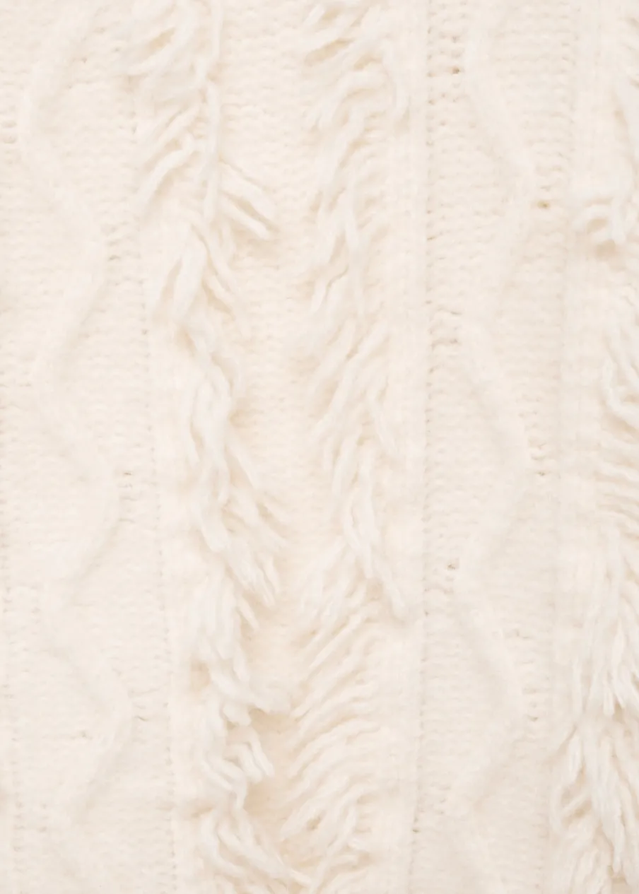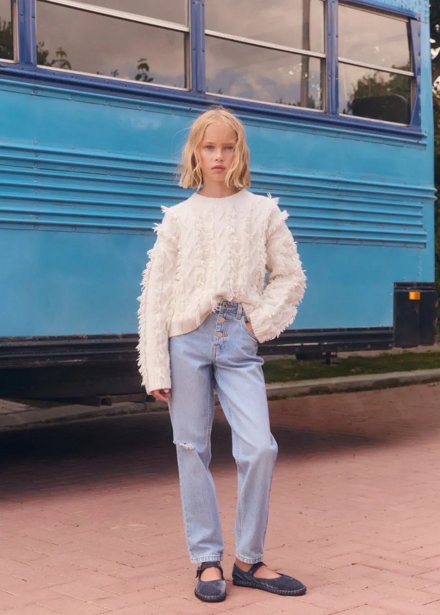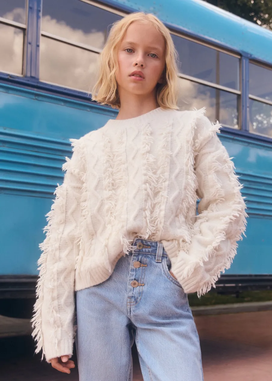Kolekcja Powrót do szkoły. Model prosty. Długi rękaw. Model z frędzlami. Okrągły dekolt.