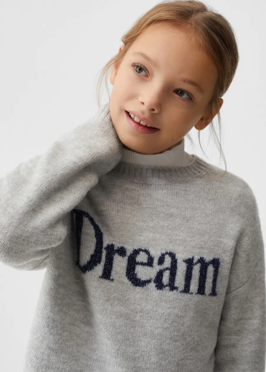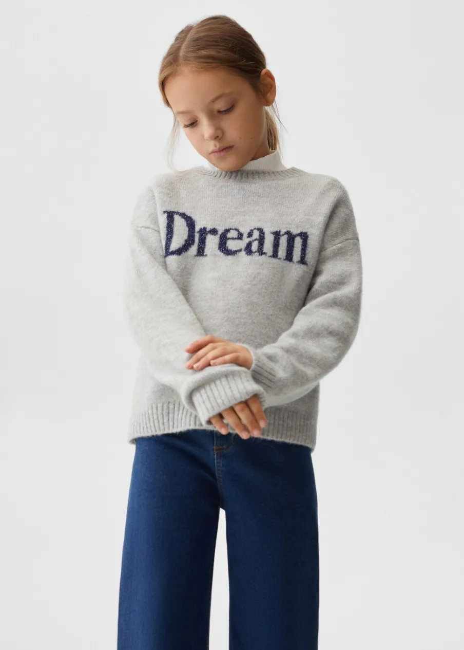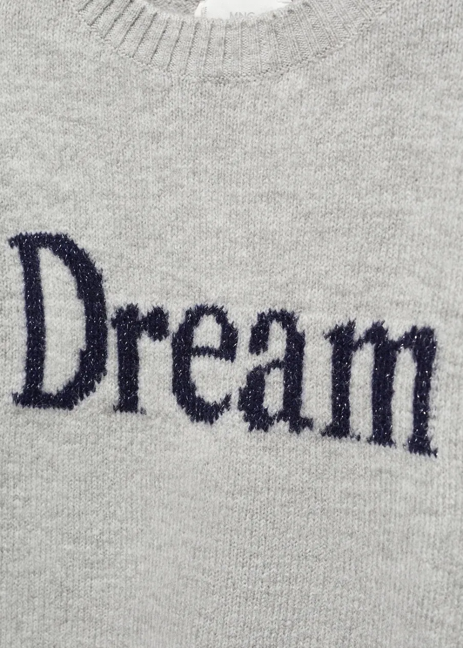 OpisDzianinowa tkanina, prosty krój, nadruk tekstu, okrągły dekolt, długi rękaw, bez zapięcia.