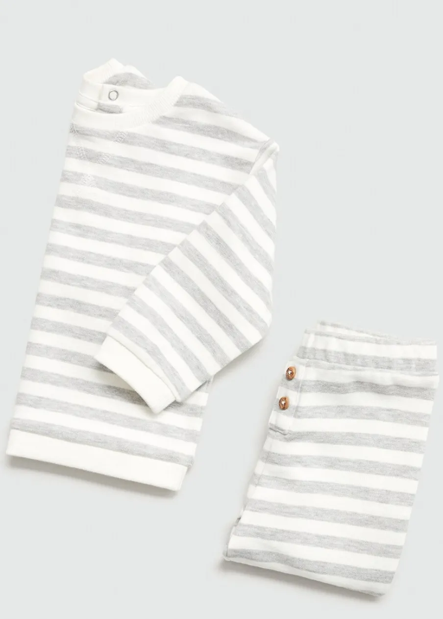 100% bomull. Model prosty. Okrągły dekolt. Długi rękaw. Zapięcie z tyłu na zatrzaskowe guziki. Dostępny zestaw total look. Wzór w paski.