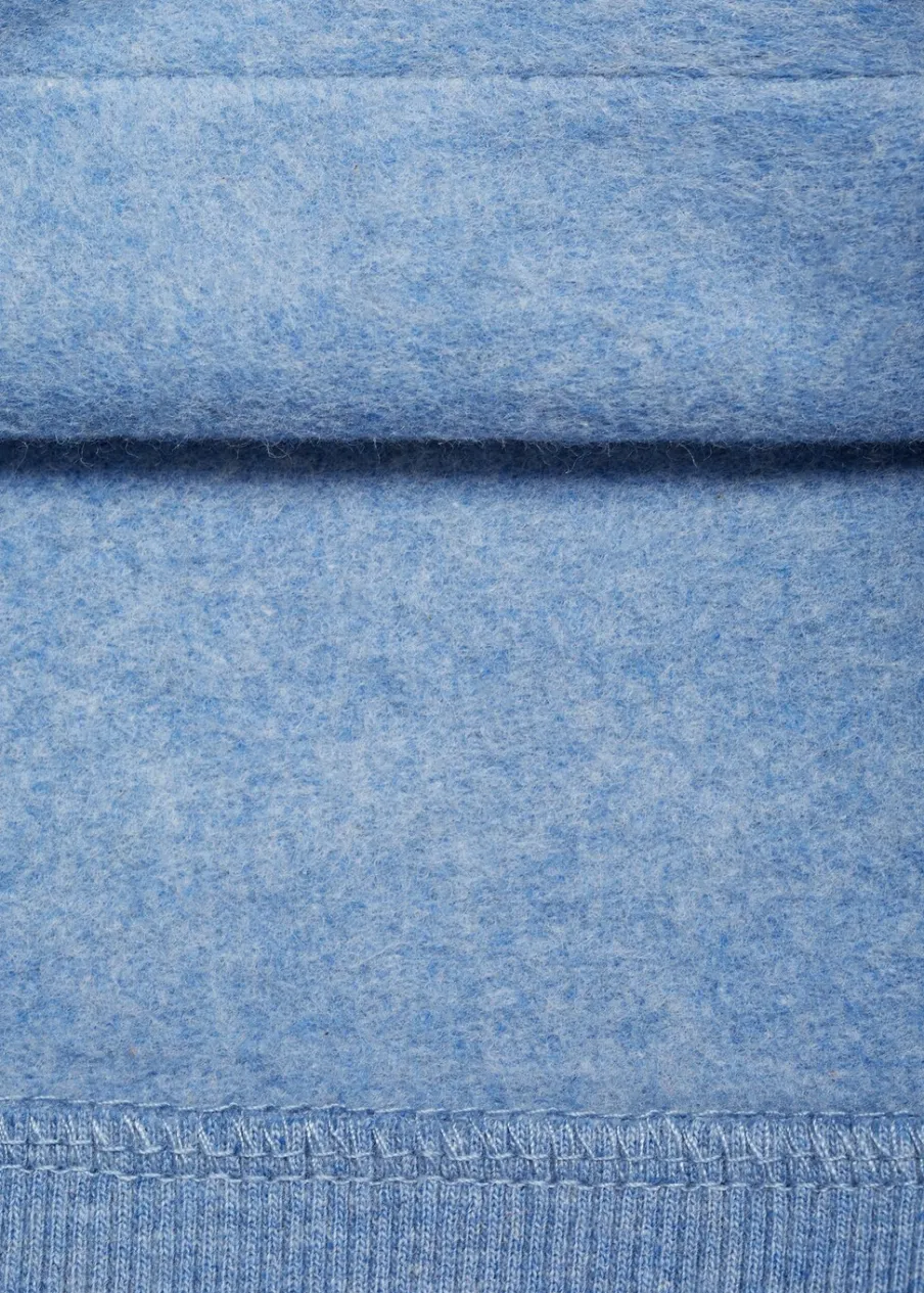 Powrót do szkoły. Tkanina z bawełną. Høyt liv. Model prosty. Okrągły dekolt. Długi rękaw. Kieszeń kangurka.