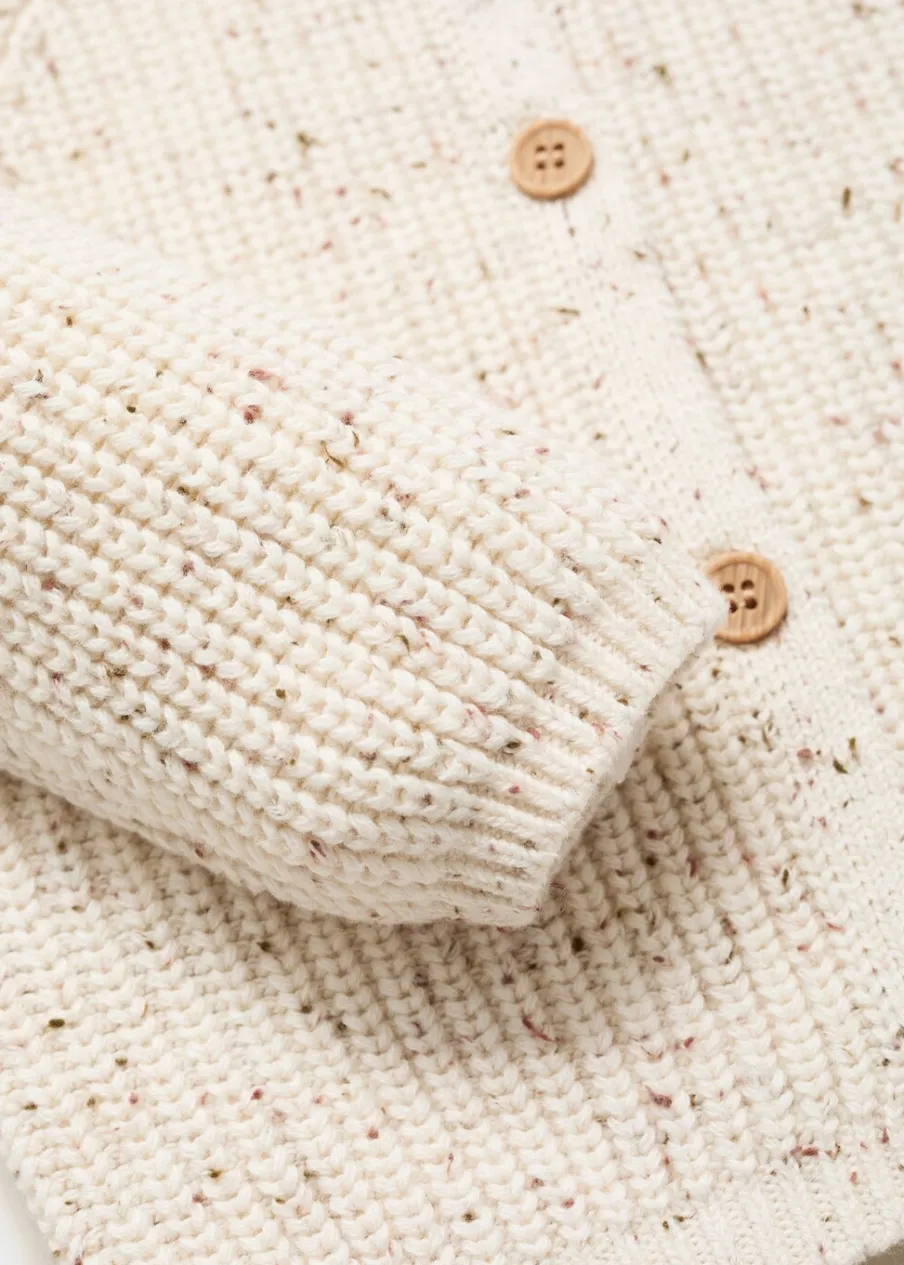 Tkanina z cienkiej dzianiny. Model prosty. Okrągły dekolt. Długi rękaw. Zapięcie z przodu. Total look. Zapięcie na guziki z przodu.