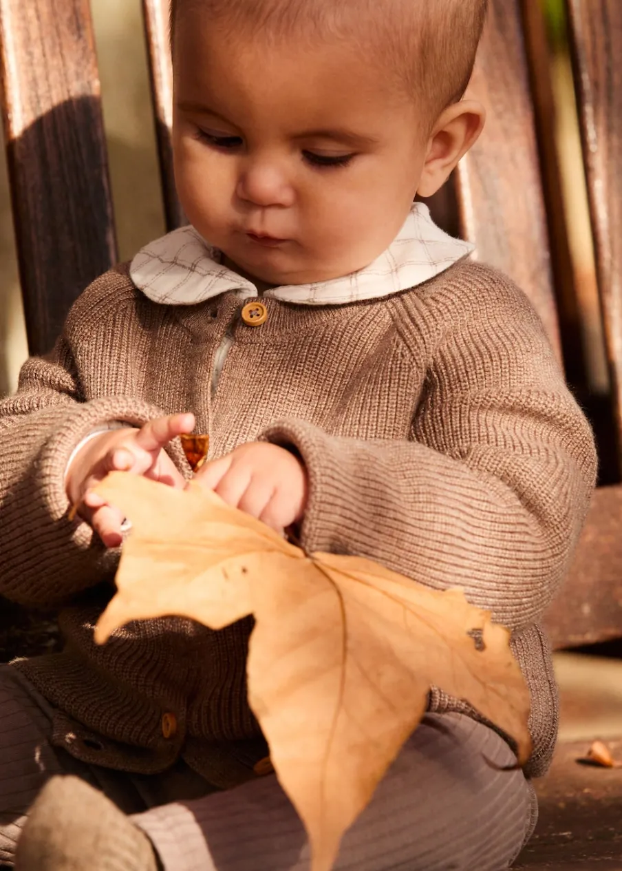Bawełniana tkanina. Dzianina. Model prosty. Okrągły dekolt. Długi rękaw. Zapięcie na guziki.
