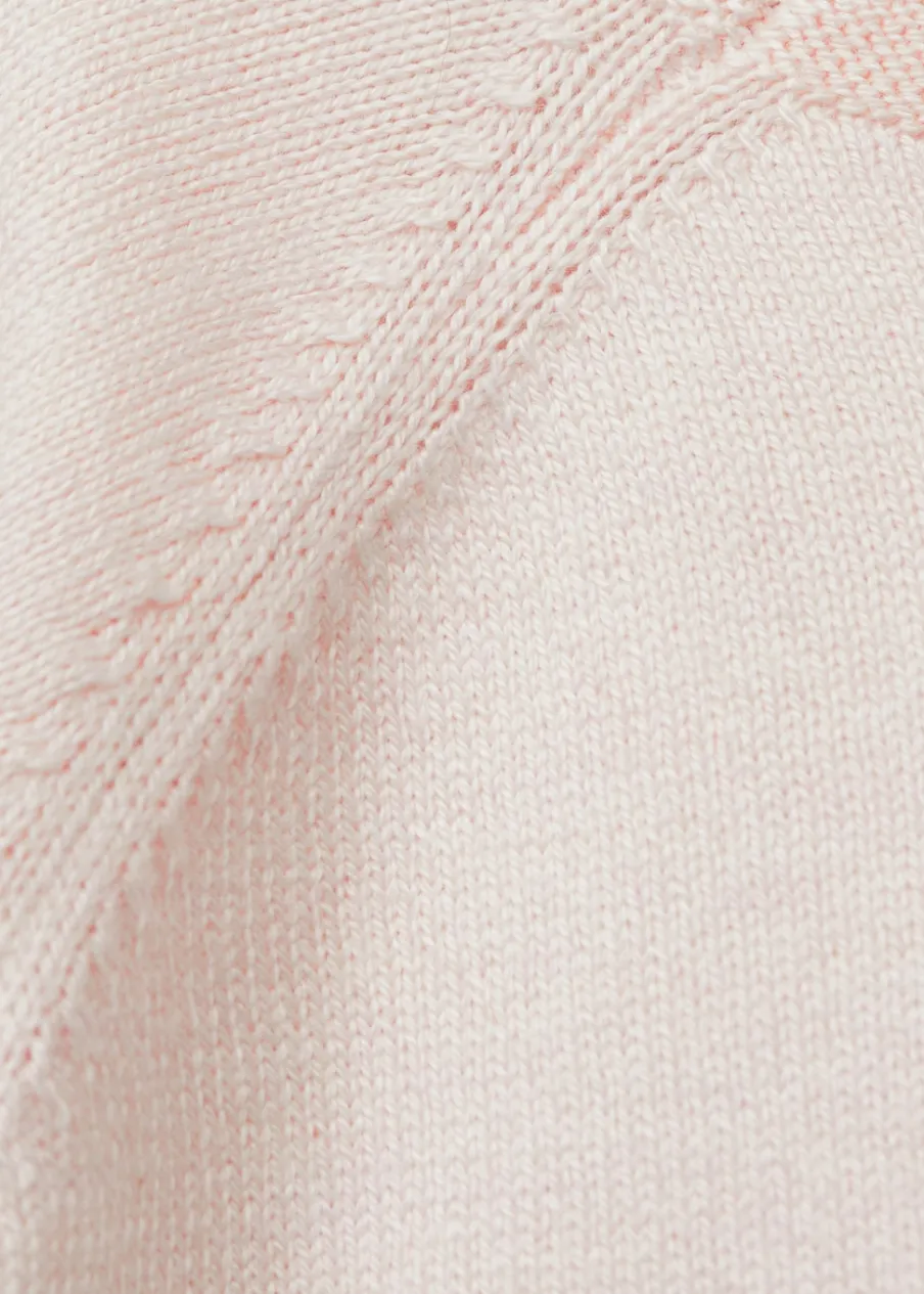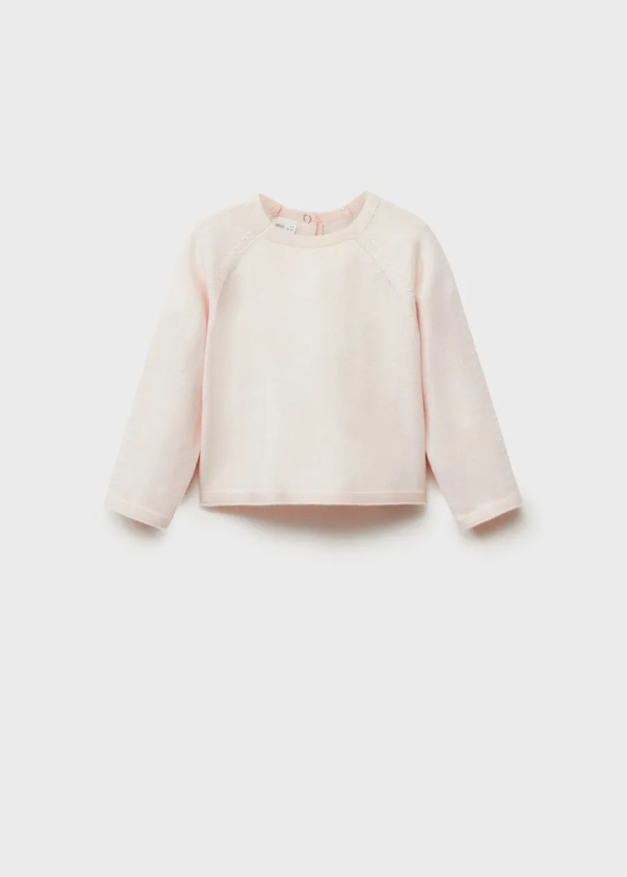 Dzianina. Bawełniana tkanina. Model prosty. Okrągły dekolt. Długi rękaw. Zapięcie z tyłu na guziki.