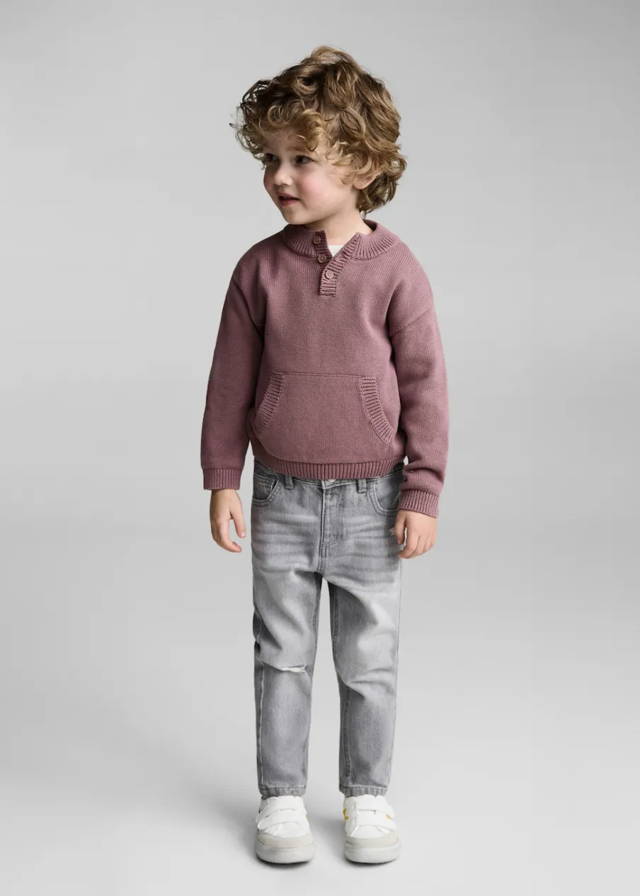 Bawełna 100%. Długi rękaw. Okrągły dekolt zapinany na guziki. Kieszeń kangurka. Kołnierz, mankiety i dół z prążkowanej dzianiny.