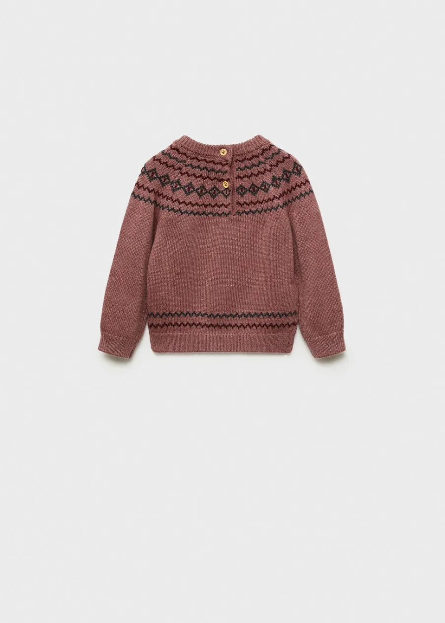 Zapięcie na ramieniu. Żakardowa tkanina. Okrągły dekolt. Model prosty. Długi rękaw.