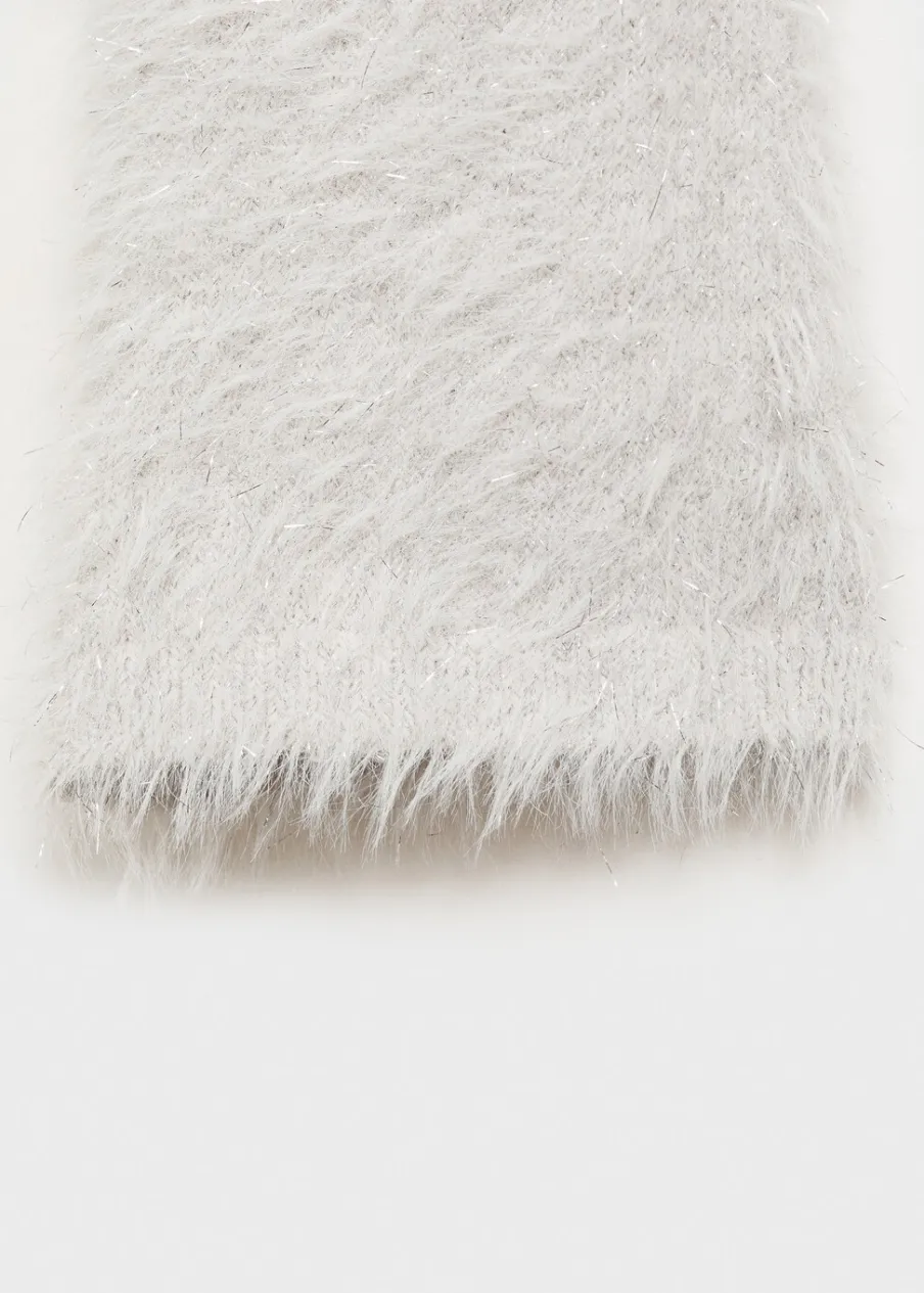 OpisDługi rękaw. Model prosty. Dekolt V. Włochata tekstura. Biżuteryjne guziki. Kolekcja wieczorowa i imprezowa.