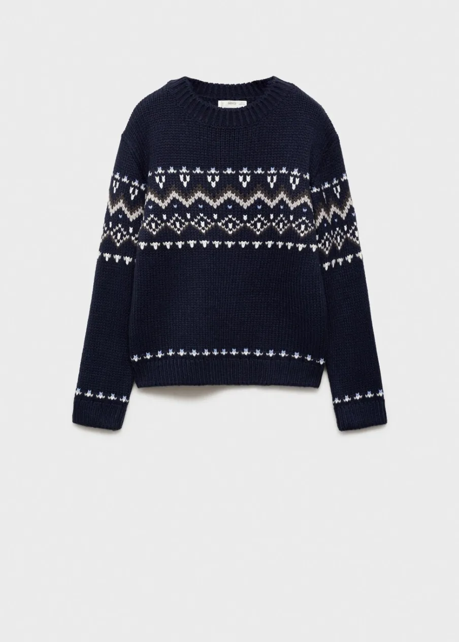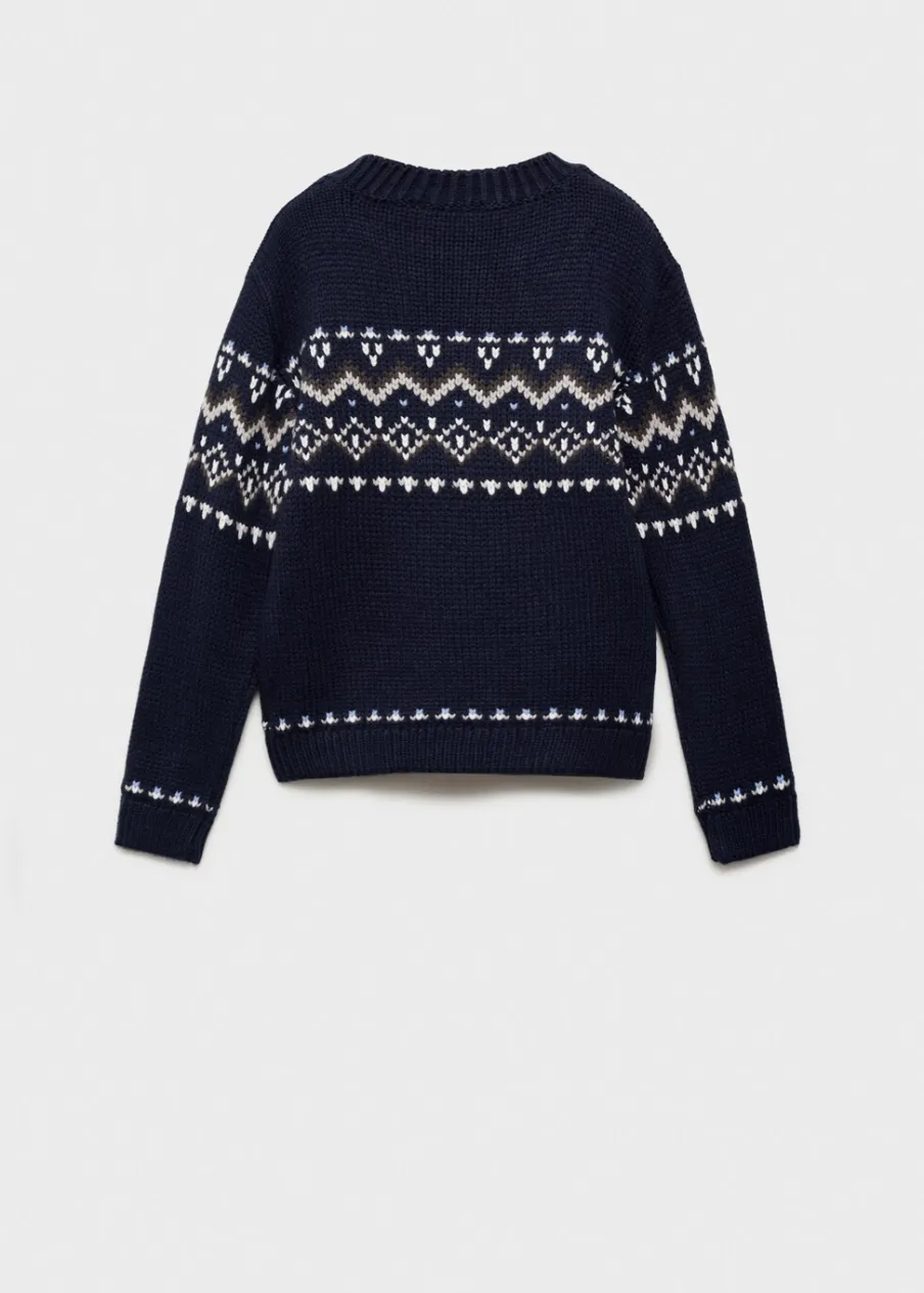 Model prosty. Żakardowy wzór. Okrągły dekolt. Długi rękaw. Bez zapięcia. Kolekcja Bożonarodzeniowa.