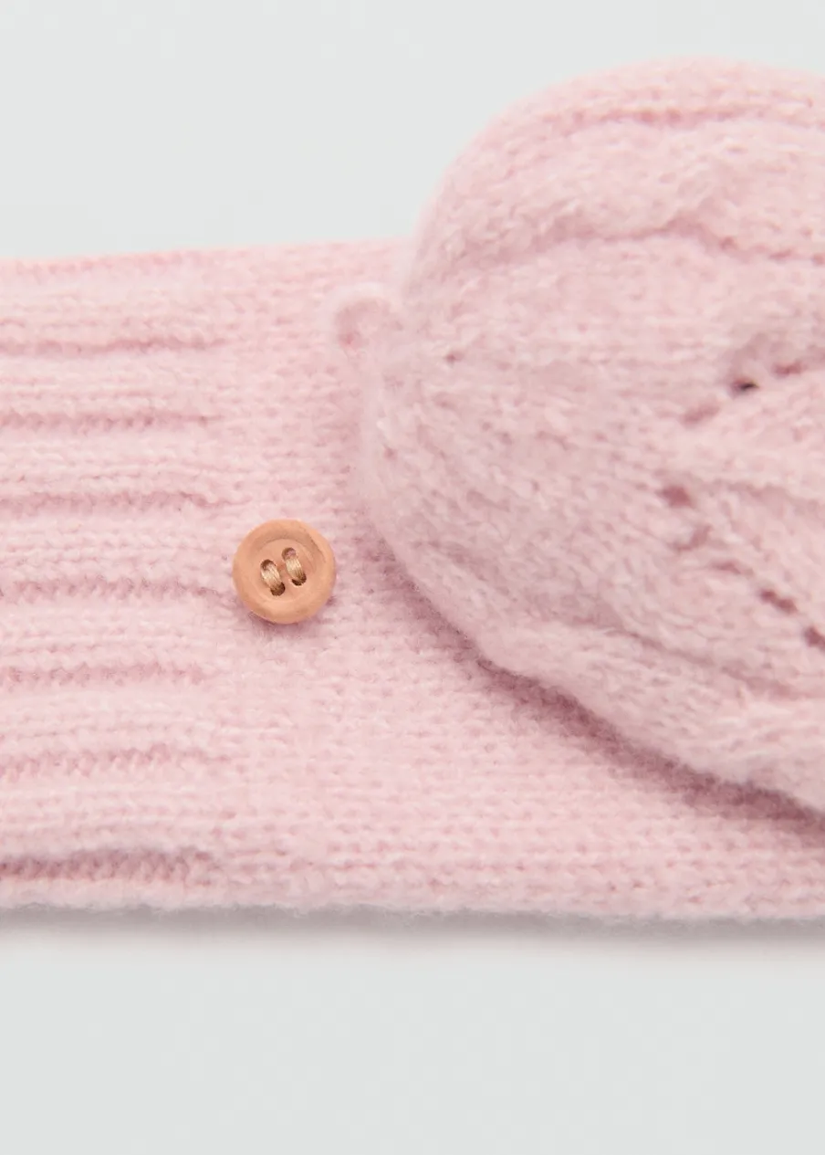 Dzianinowa tkanina. Guziki z imitacji drewna.