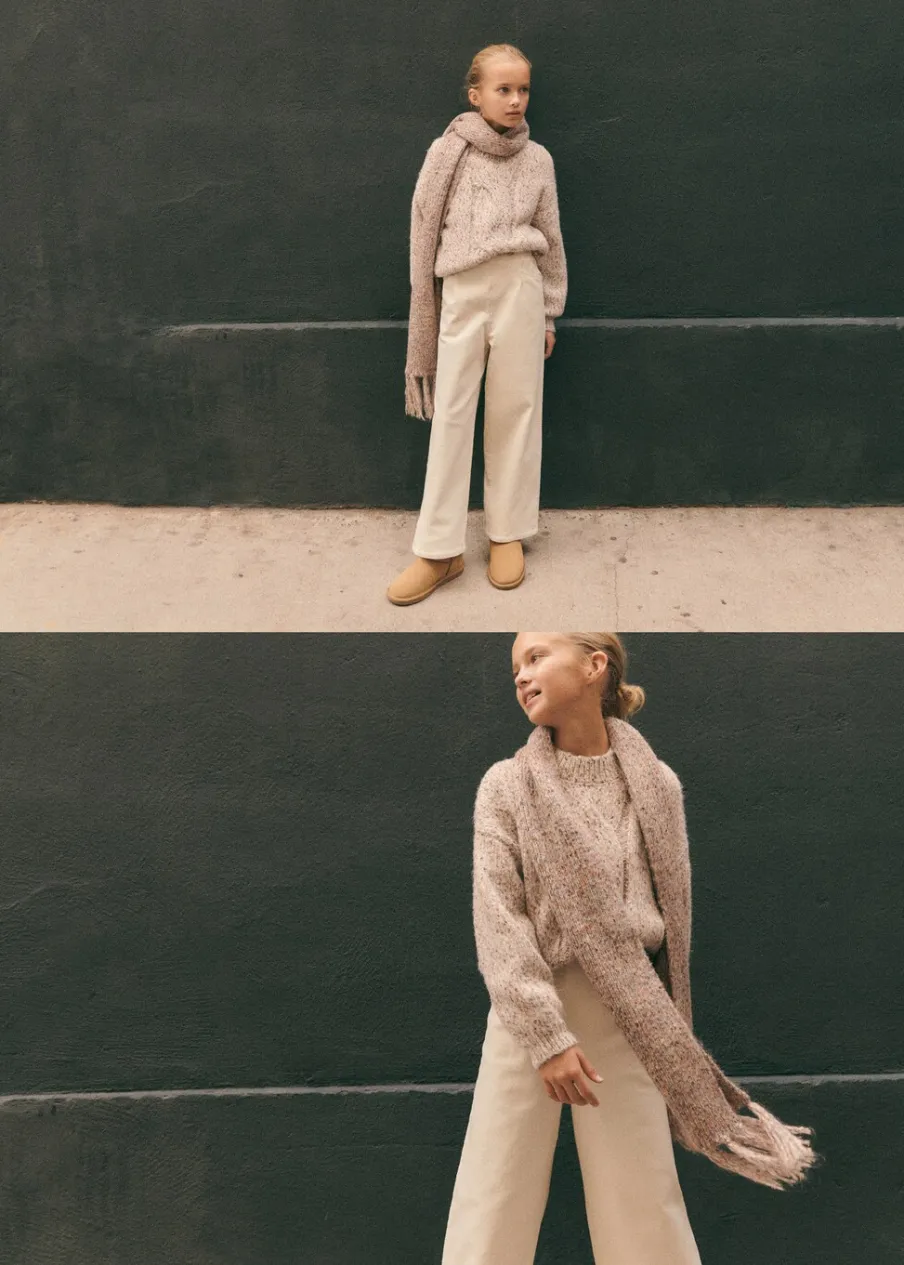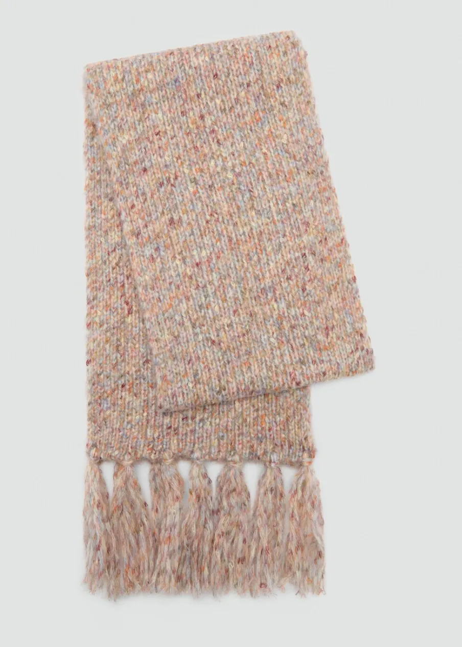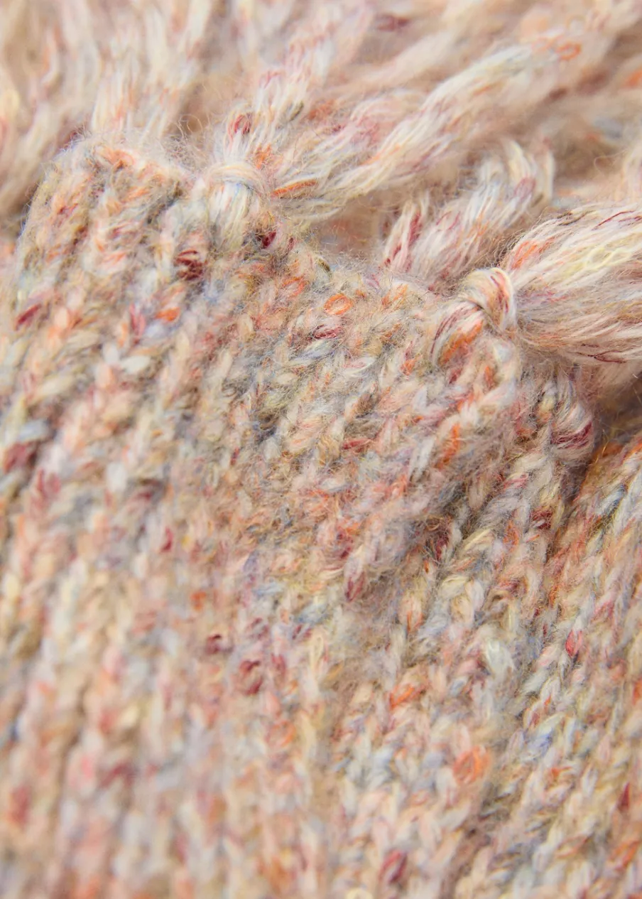 OpisDzianinowa tkanina. Dwukolorowy deseń. Dekoracyjne frędzle. Kolekcja Bożonarodzeniowa.