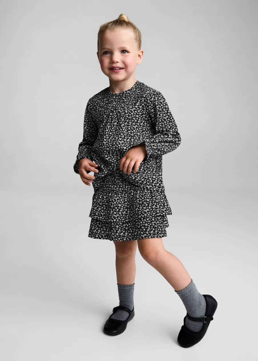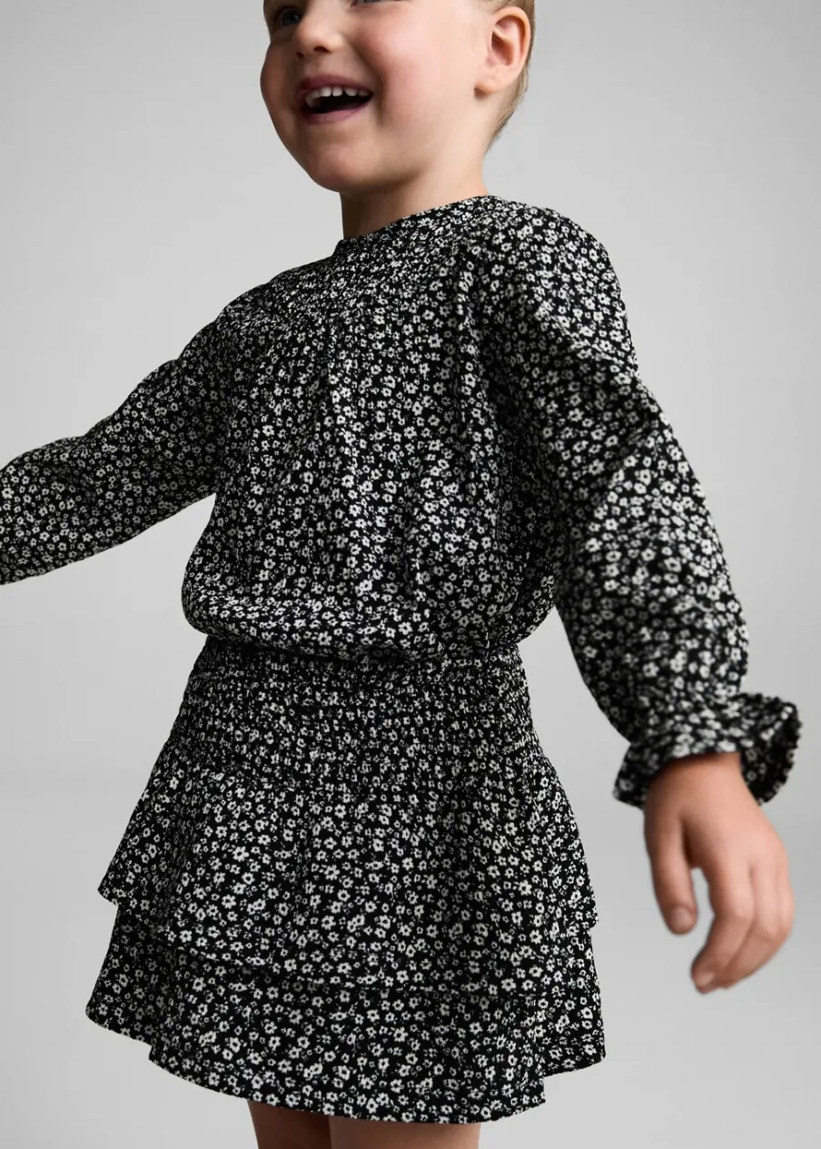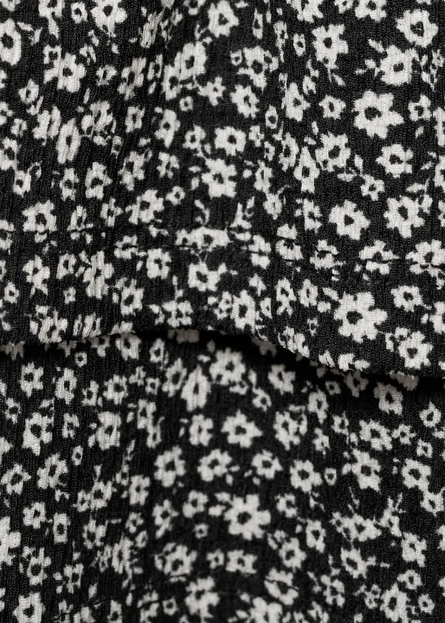 OpisKrótki krój. Kwiatowy wzór. Elastyczny pas. Model z falbankami. Model prosty.