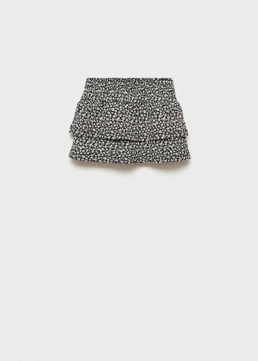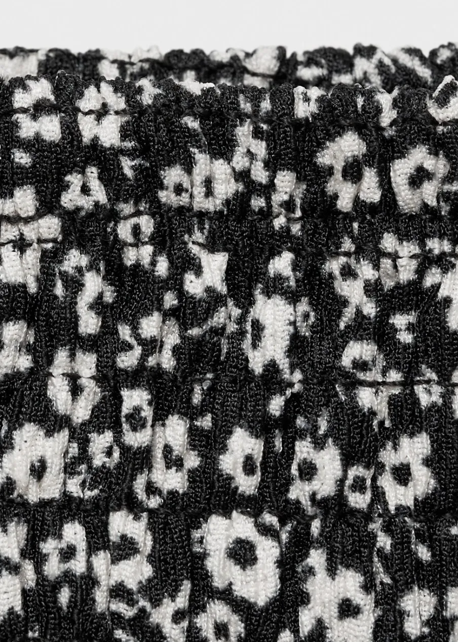 Krótki krój. Kwiatowy wzór. Elastyczny pas. Model z falbankami. Model prosty.