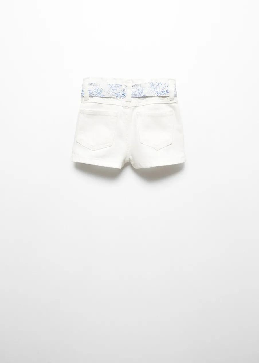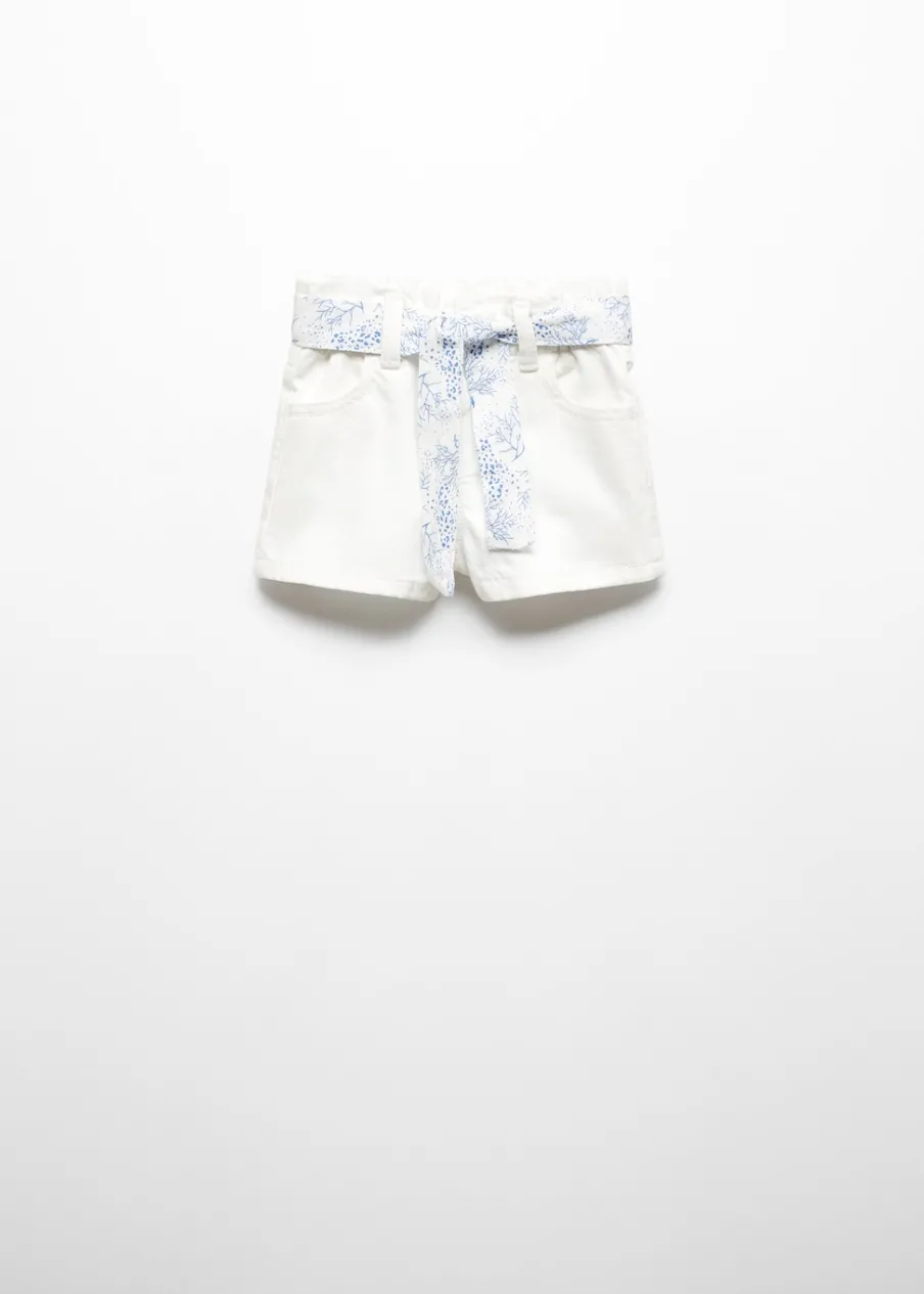 Tkanina bawełniana w dżinsowym stylu. Elastyczna talia typu paperbag. Krótki krój. Pięć kieszeni. Paperbag. Szlufki. Zapięcie na zatrzaskowy guzik.