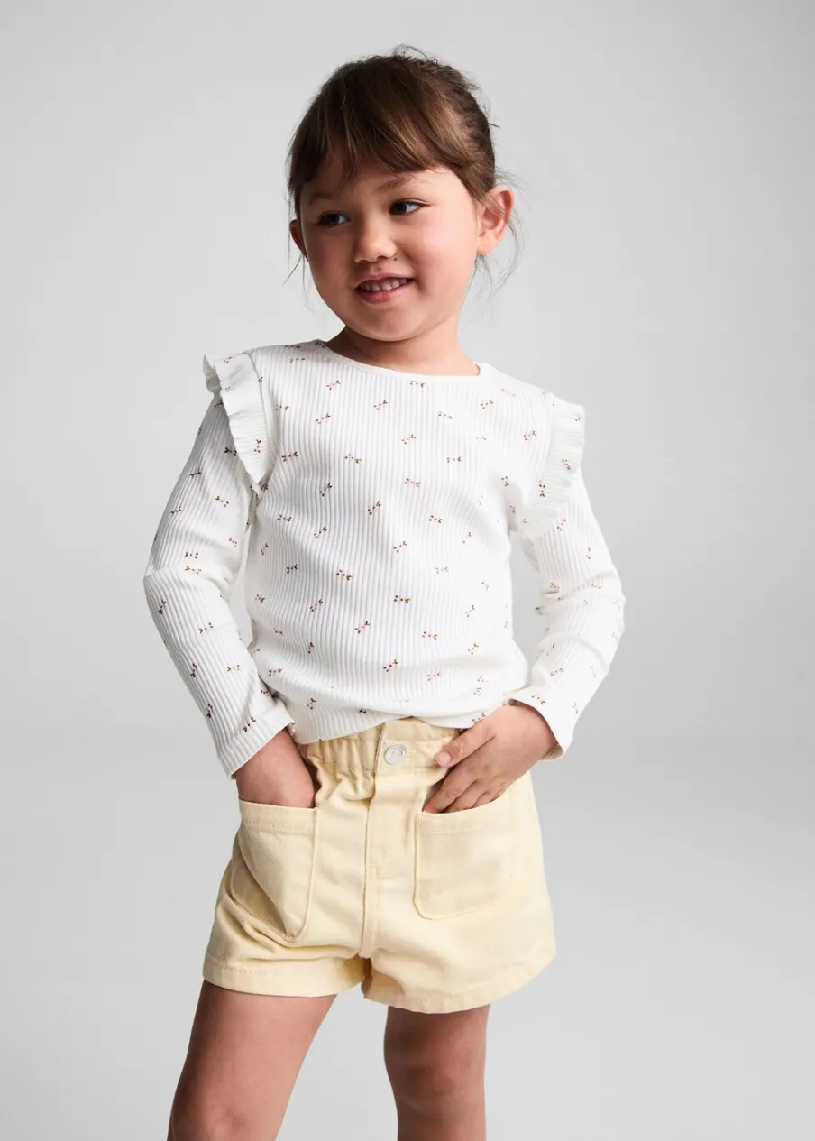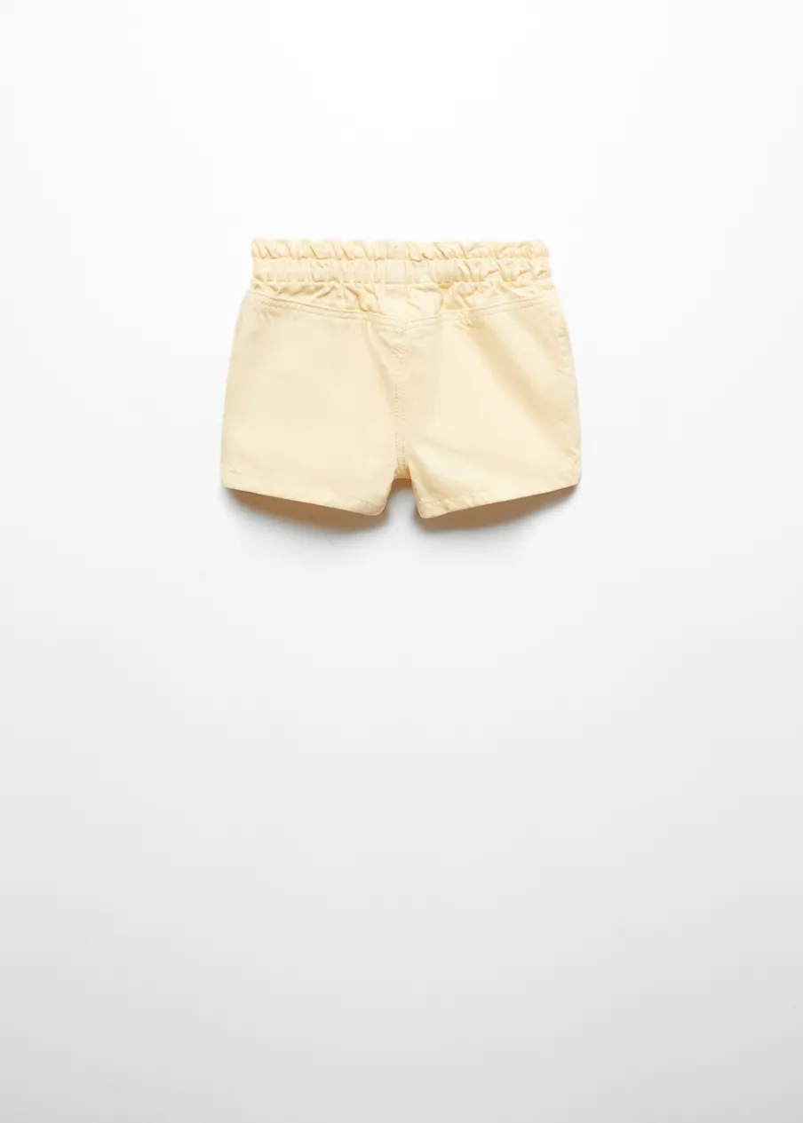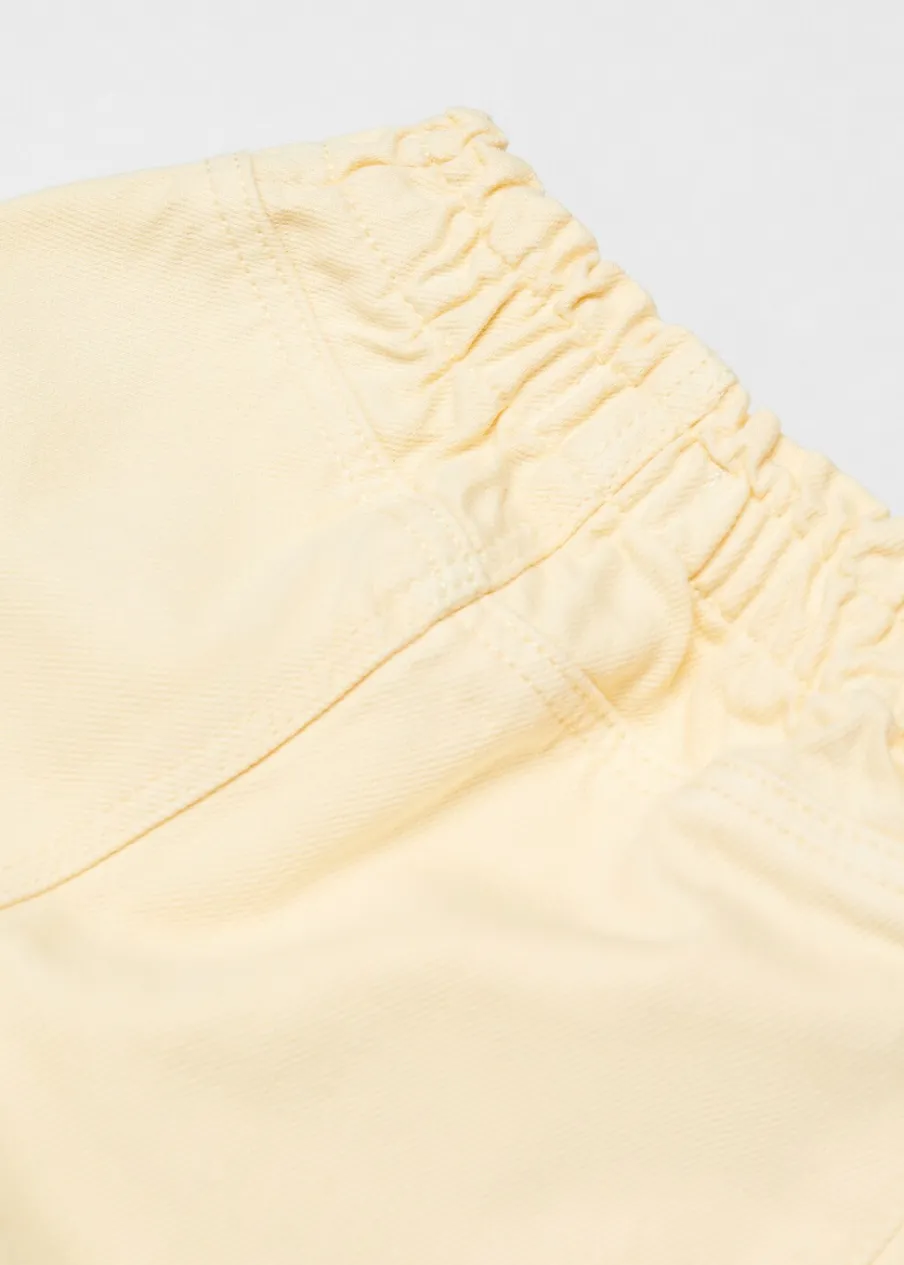 100% bomull. Paperbag. Elastyczny pas. Elastyczna talia typu paperbag. Elastyczna gumka. Dwie kieszenie z przodu. Krótki krój. Zapięcie na guzik. Zapięcie na zatrzaskowy guzik.