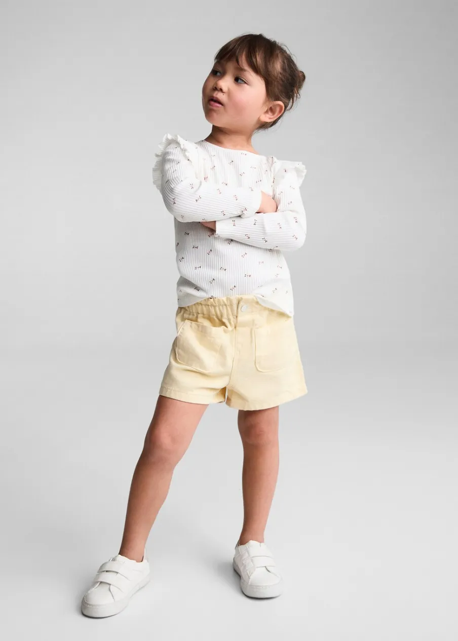 Opis100% bomull. Paperbag. Elastyczny pas. Elastyczna talia typu paperbag. Elastyczna gumka. Dwie kieszenie z przodu….