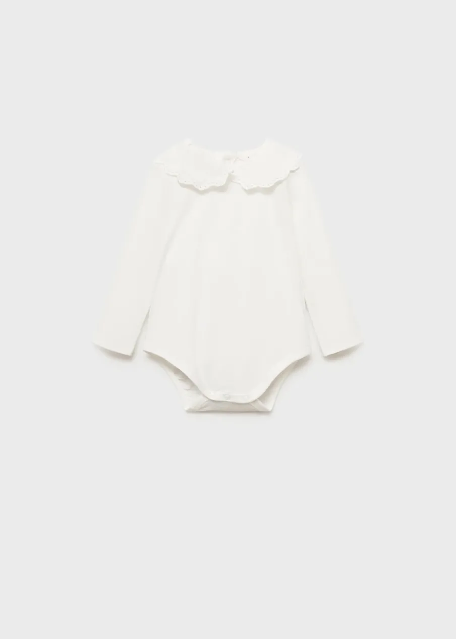 OpisTkanina z bawełną. Model prosty. Kołnierzyk bebe. Ozdobny haft na kołnierzyku. Długi rękaw. Zapięcie z tyłu …