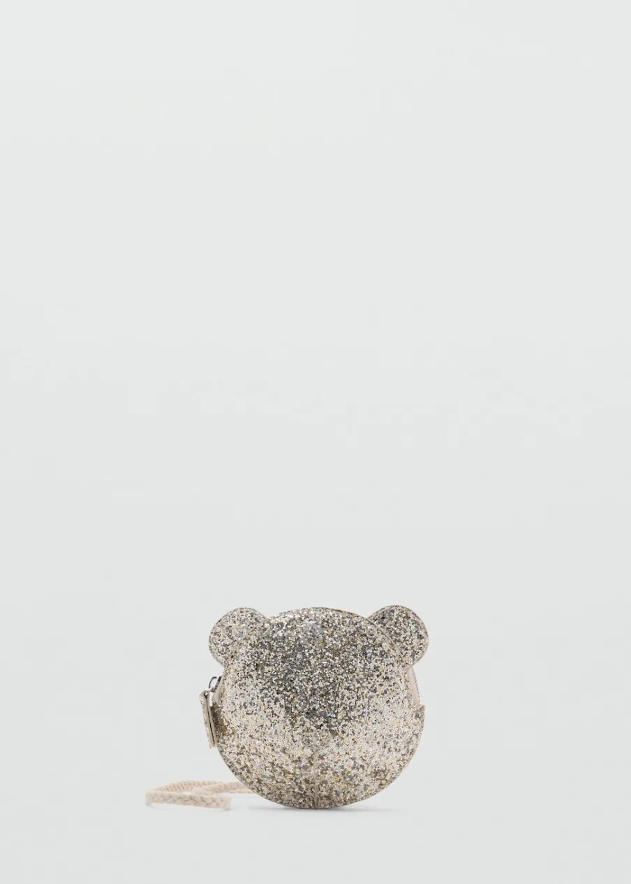 OpisTkanina z brokatem. W kształcie misia. Ozdobne uszy. Długi uchwyt. Zapięcie na suwak.