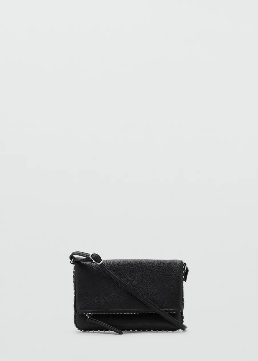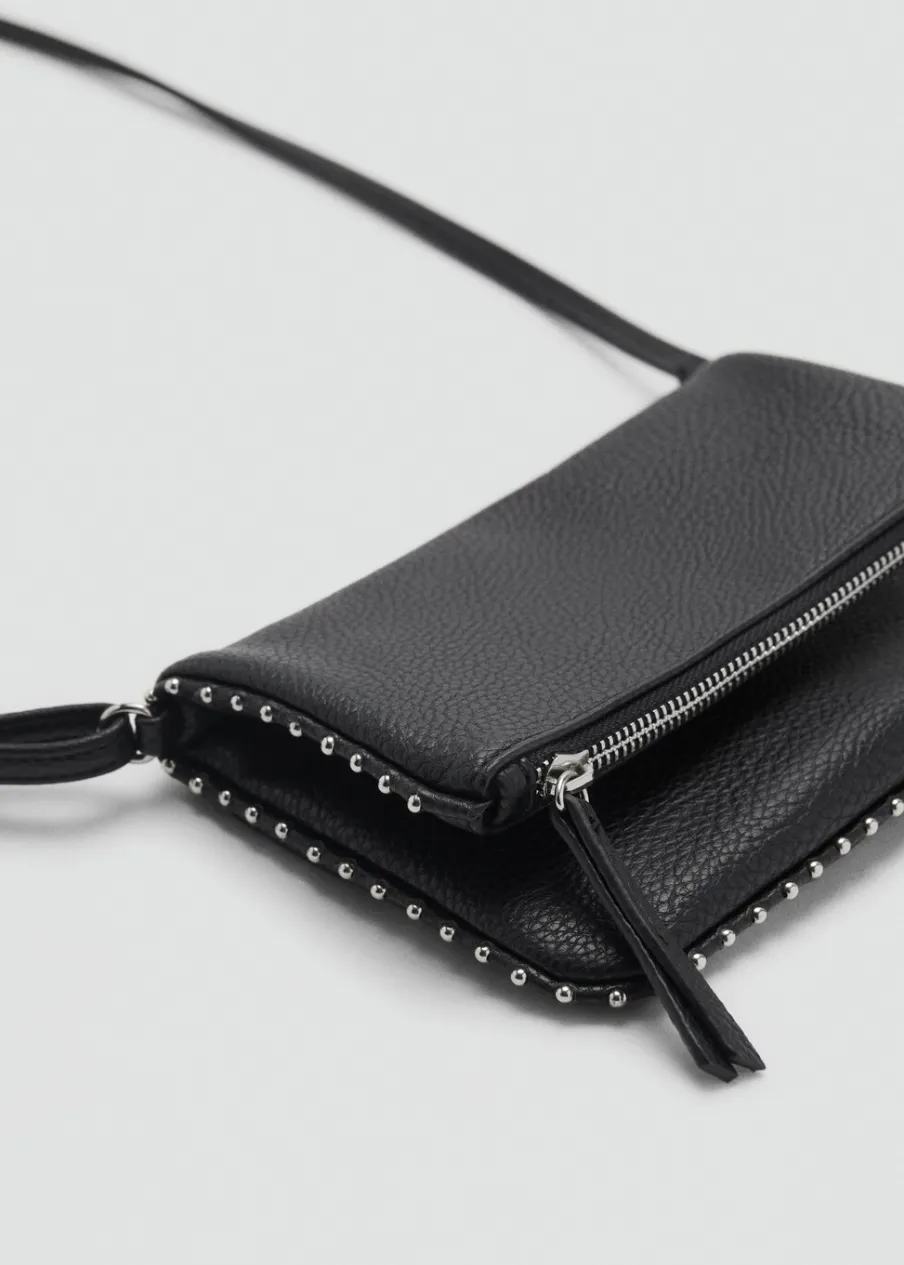 Efekt skóry. Zapięcie na suwak. Długi, regulowany uchwyt. Detal z ćwiekami. Wewnętrzna podszewka.