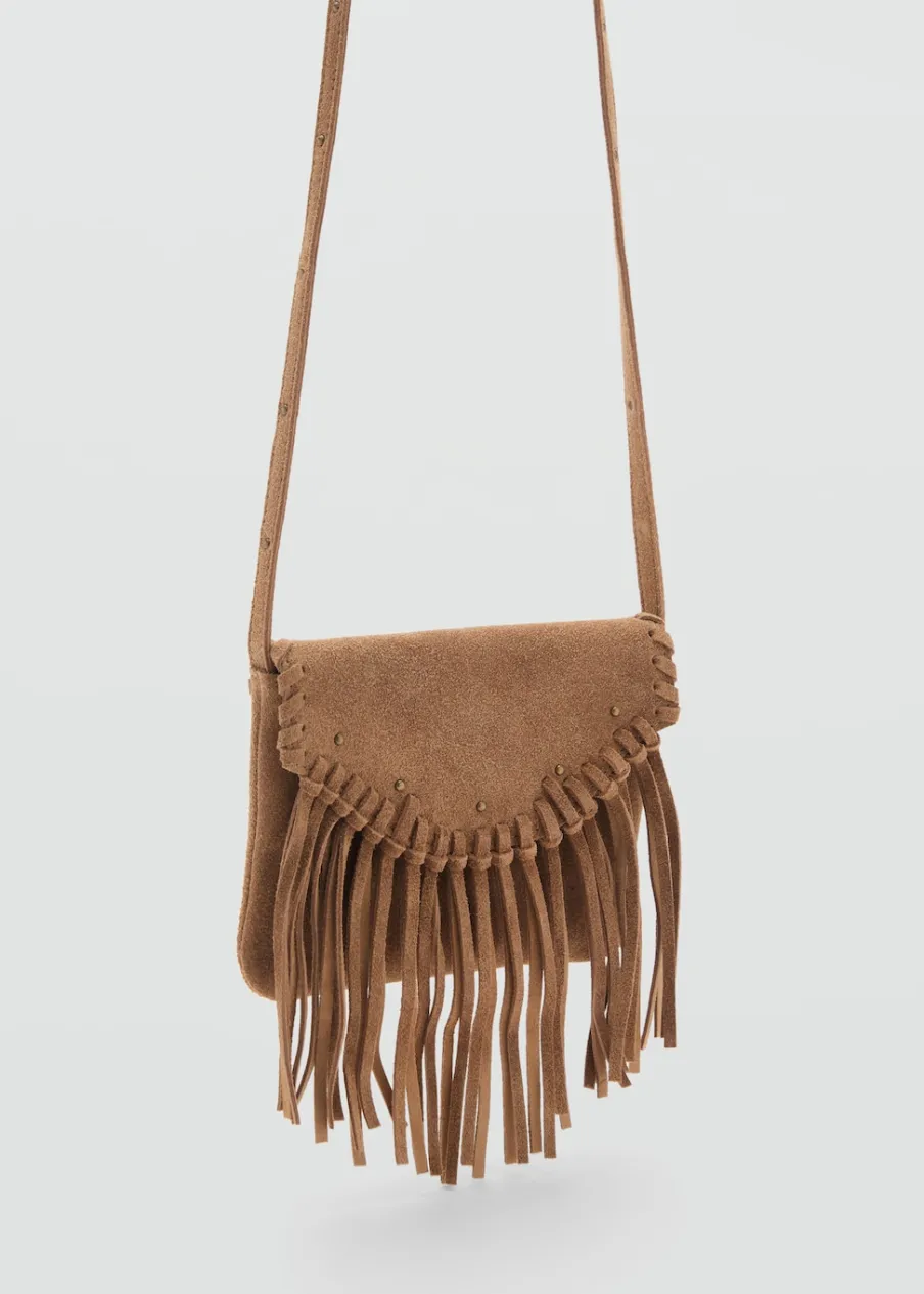 100% skóra bydlęca. Długi uchwyt. Model z frędzlami. Zapięcie na magnesy z przodu. Wewnętrzna podszewka.