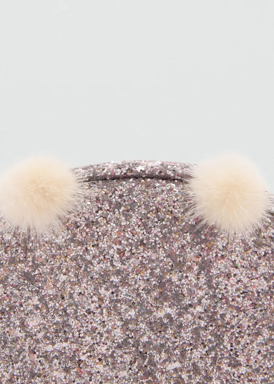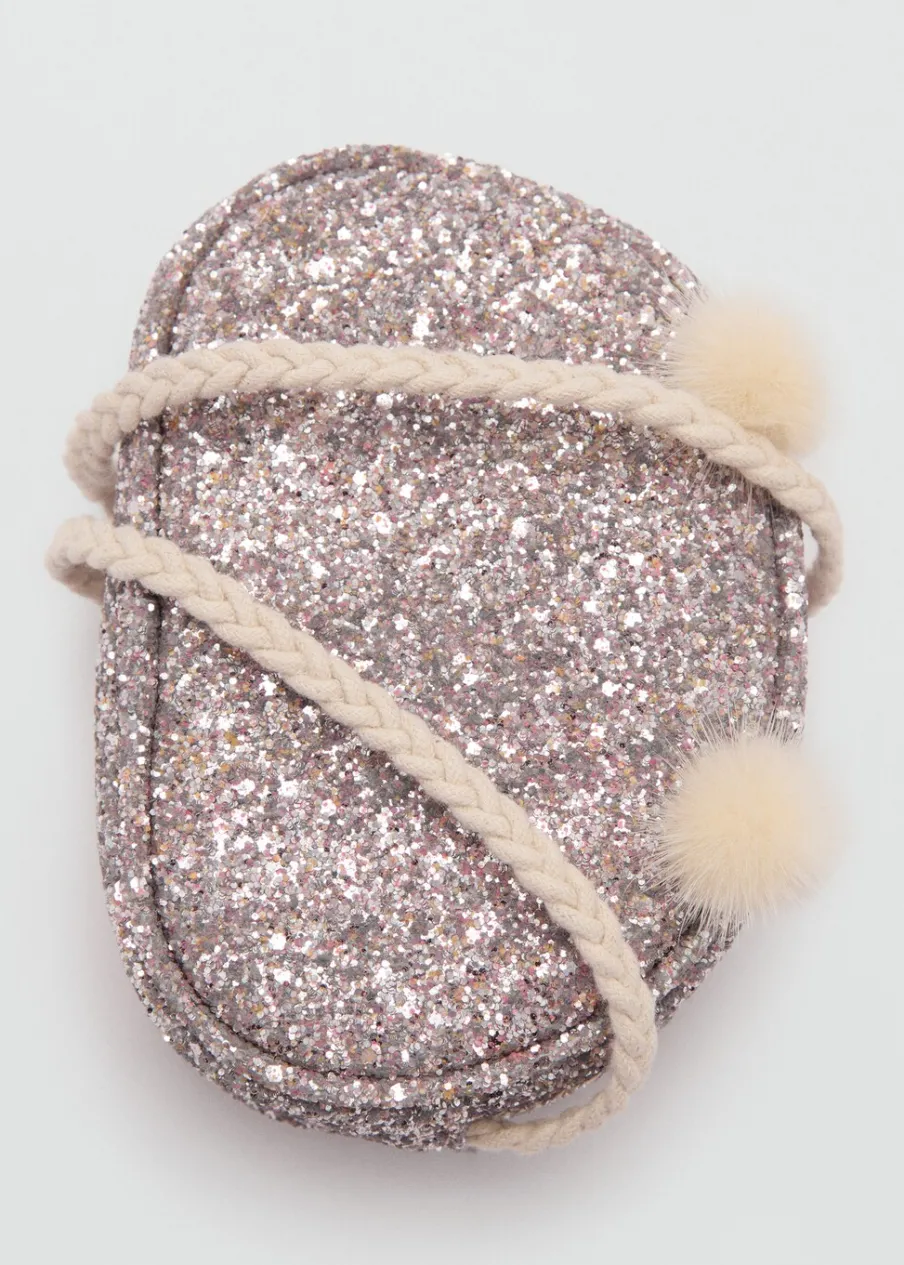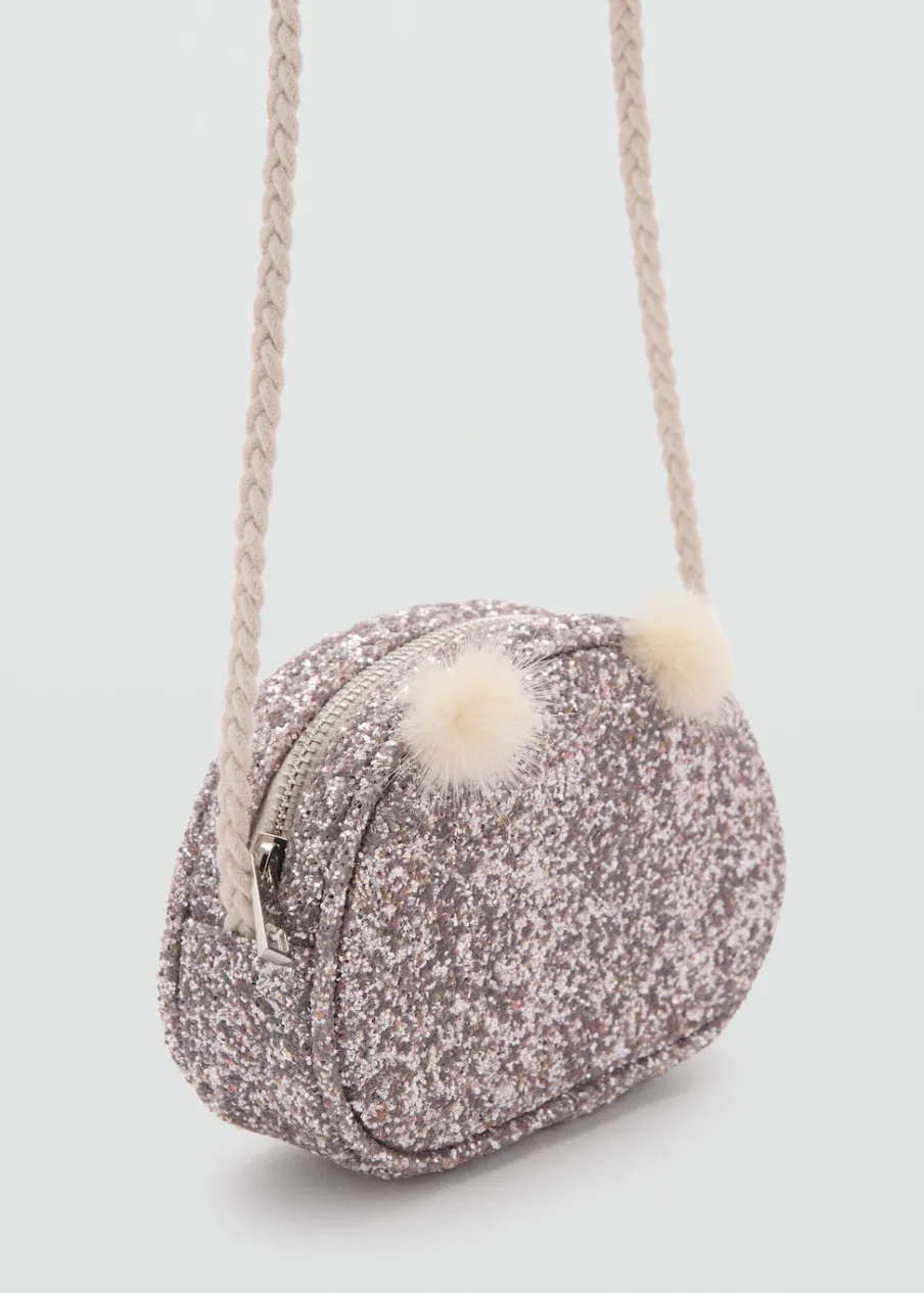 Ozdobny brokat. Ozdobne pompony. Długi uchwyt. Zapięcie na suwak.