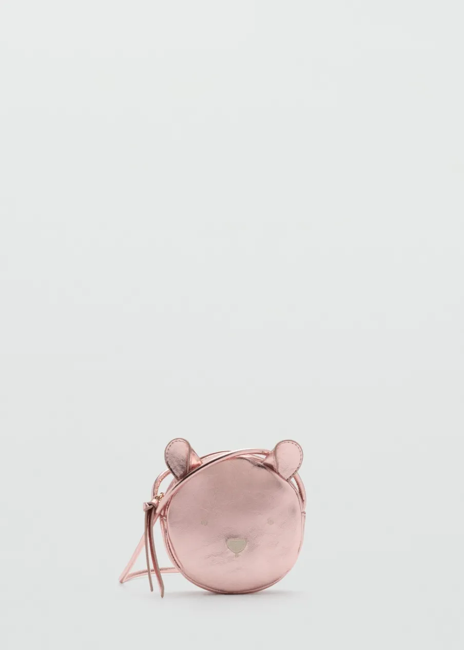 OpisMetaliczny efekt. Ozdobne uszy. Długi uchwyt. W kształcie misia. Zapięcie na suwak.
