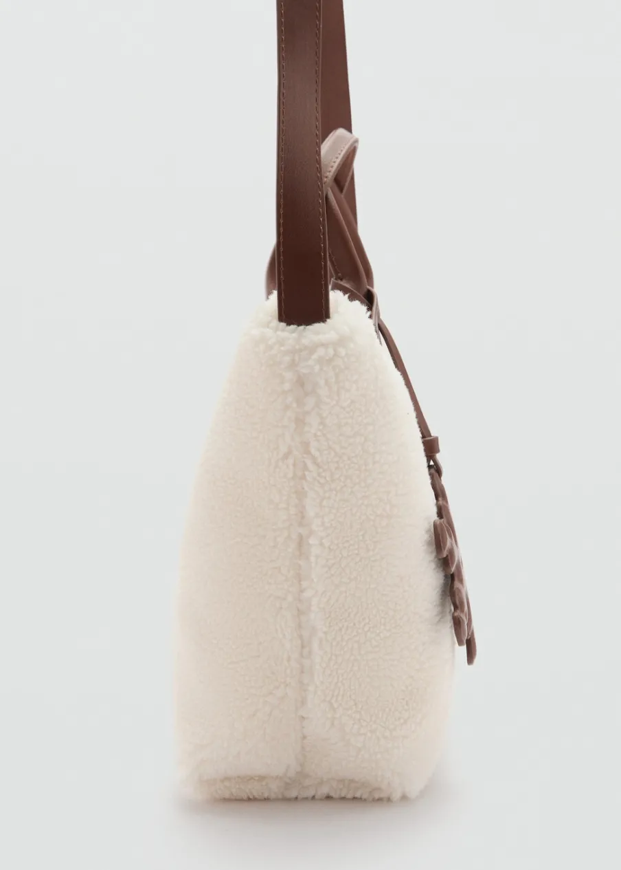 Tkanina efekt owczej skóry. Długi uchwyt. Podwójny, krótki uchwyt. Zapięcie na suwak. Kolekcja Bożonarodzeniowa.