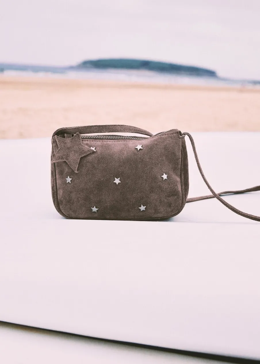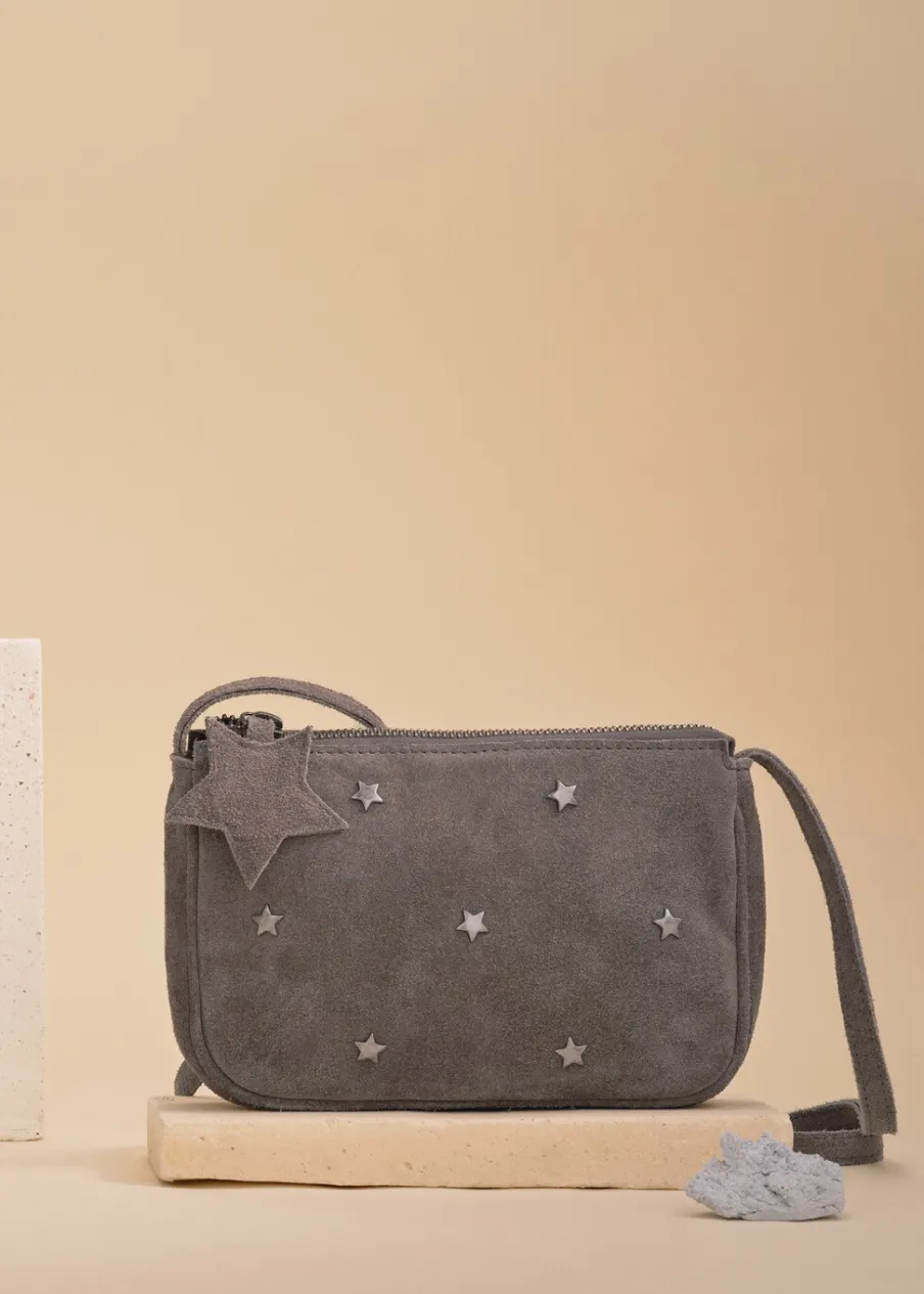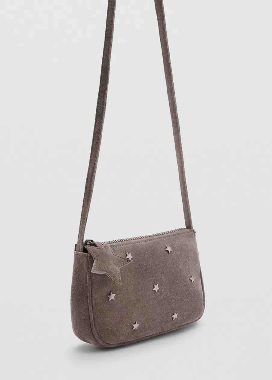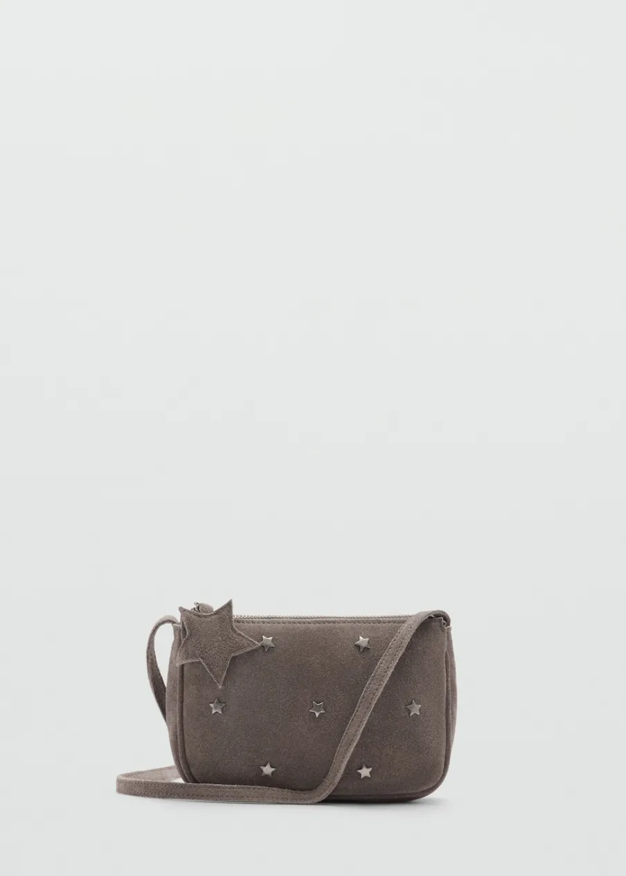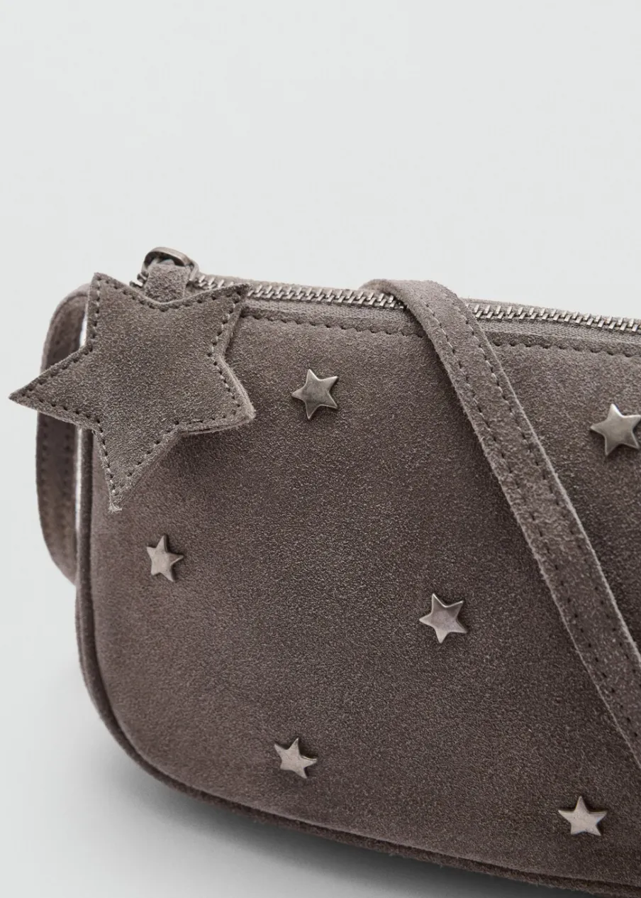 Kolekcja Powrót do szkoły. 100% skóra bydlęca. Ozdobne ćwieki. Ozdobne gwiazdki. Długi uchwyt. Zapięcie na suwak. Mała wielkość.