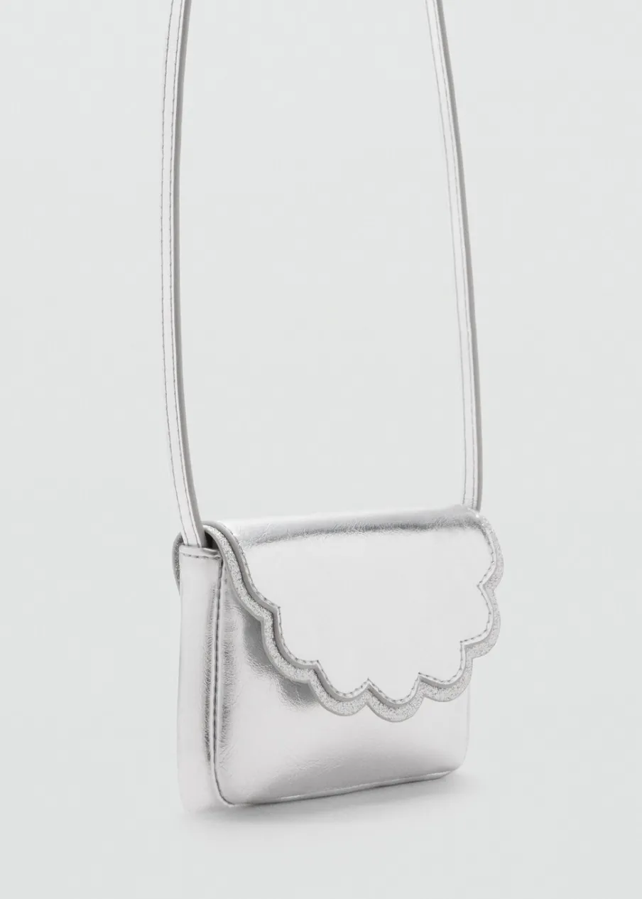 Kolekcja Powrót do szkoły. Mała wielkość. Metaliczny efekt. Detal z brokatem. Długi uchwyt. Pasek do noszenia na skos.