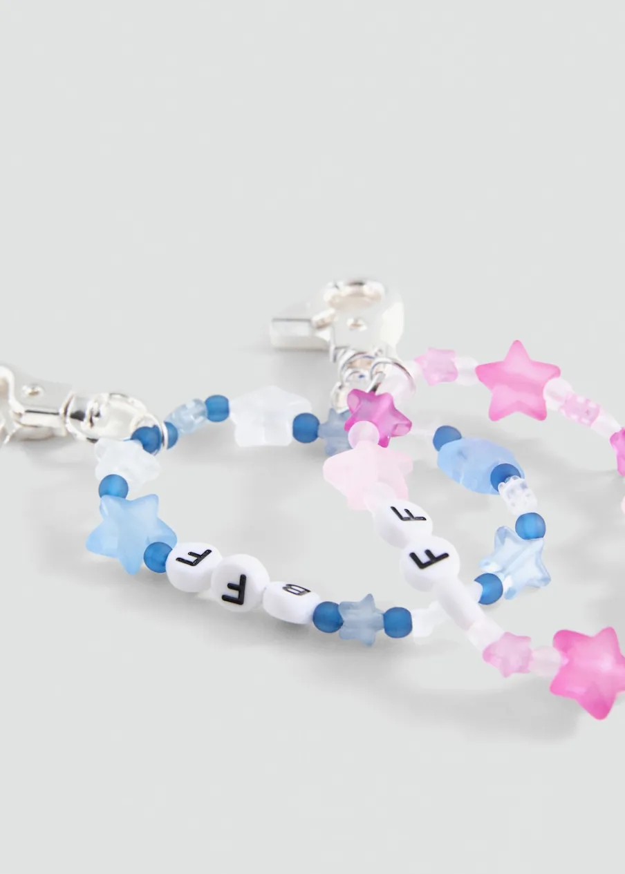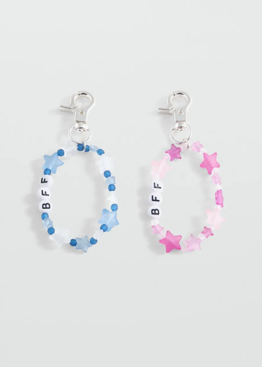 OpisZestaw 2 szt. Połączenie różnych koralików. Zapięcie na karabińczyk. Best Friends.9.0×3.0 cm.