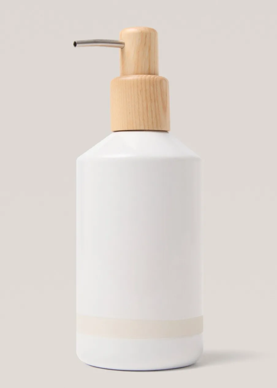 90% kamionka. 10% drewna. Pojemność: 350 ml. Wysokość 14 cm. Średnica: 7 cm. Kontrastowy pas. Kolekcja spa. Akcesorium do domu. Skompletuj look za pomocą innych produktów z kolekcji.