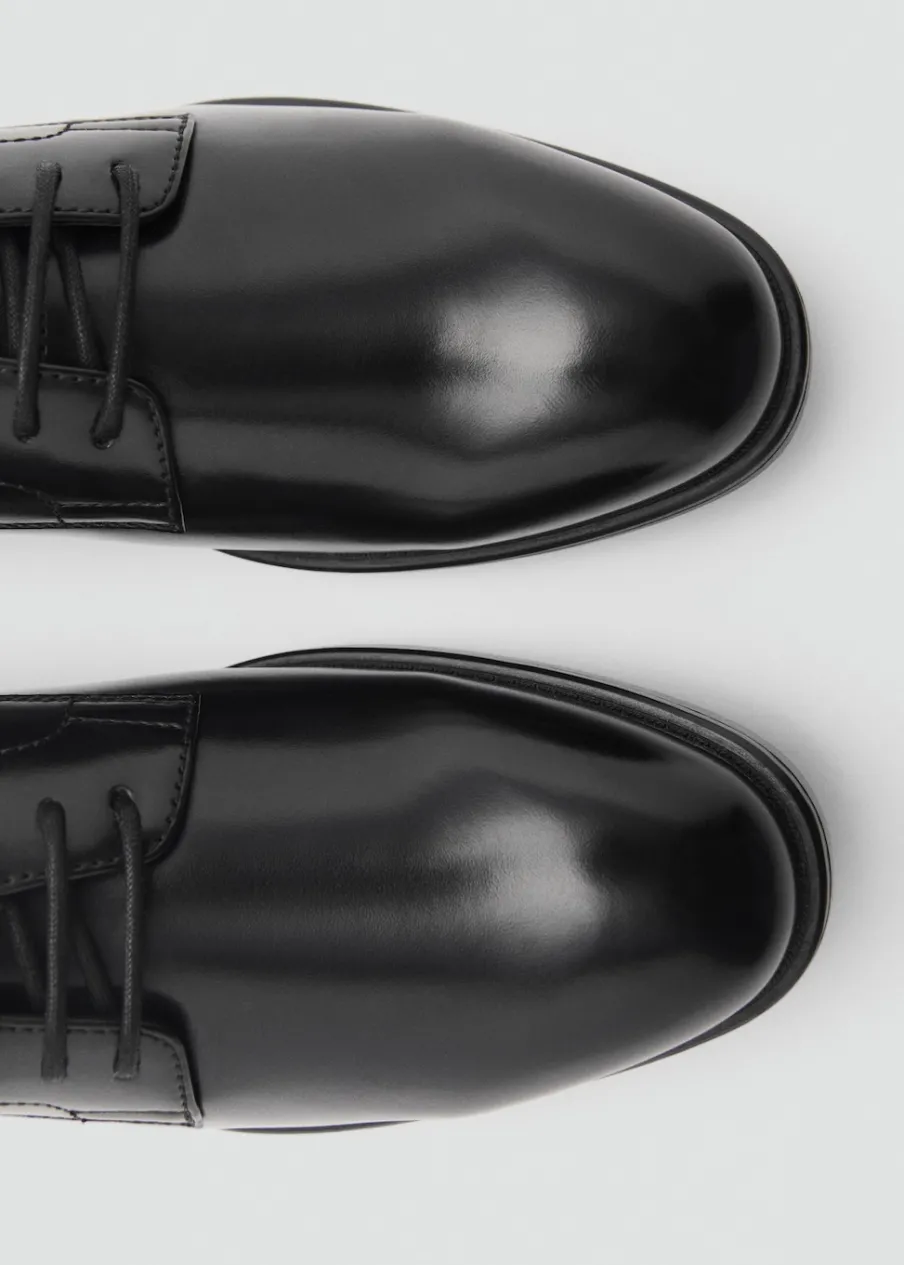 Imitacja skóry nappy. W stylu blucher o klasycznym fasonie. Sznurowanie na cztery dziurki. Stębnowane detale. Okrągły nosek. Podeszwa w tym samym kolorze.