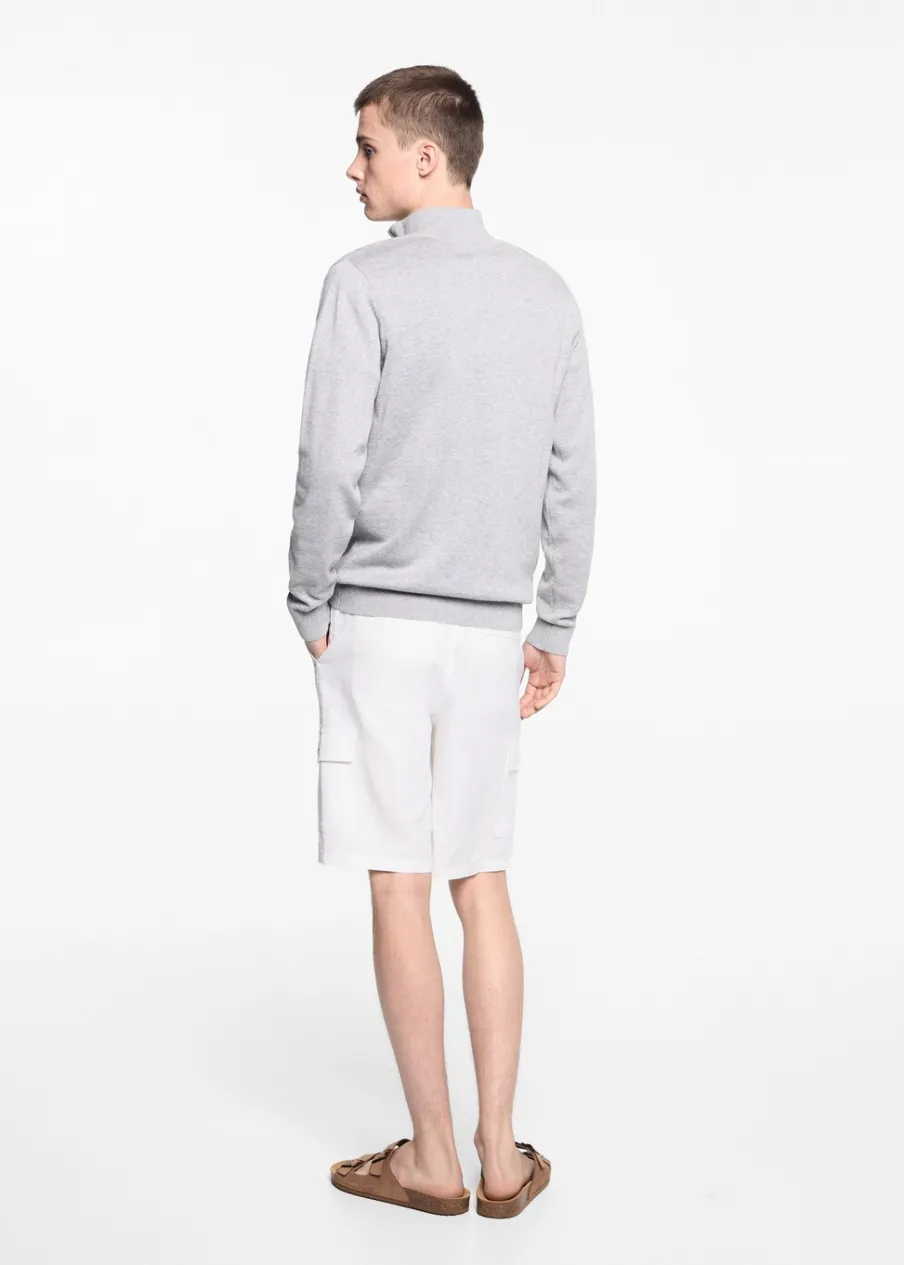 OpisTkanina mieszanka bawełny i lnu. Model prosty. Krótki krój. Elastyczny pas. Dwie kieszenie cargo. Wiązanie na sz…