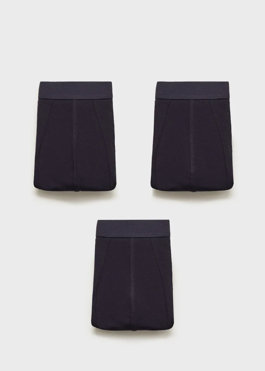 Zestaw 3 sztuk. Bawełniana tkanina stretch. Ciemnoniebieski. W stylu boxer. Elastyczny pas.