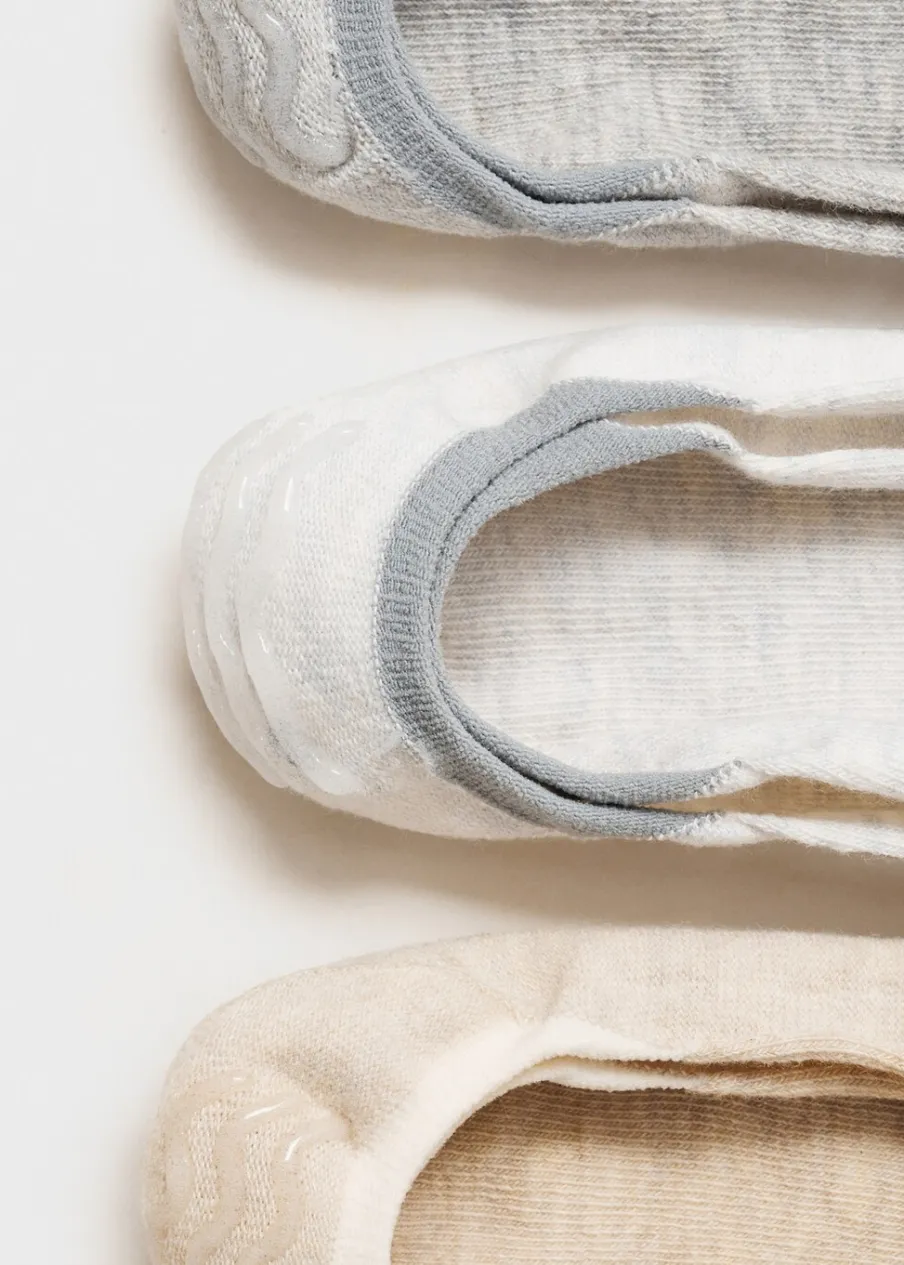 Krótki krój. Zestaw 3 sztuk. Fason do kostek. Prążkowana tekstura. Silikonowa aplikacja na pięcie dla lepszego podtrzymania.