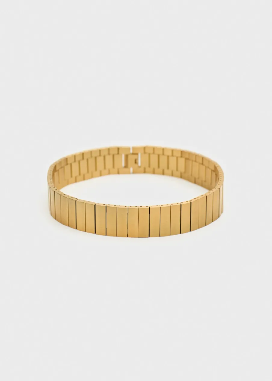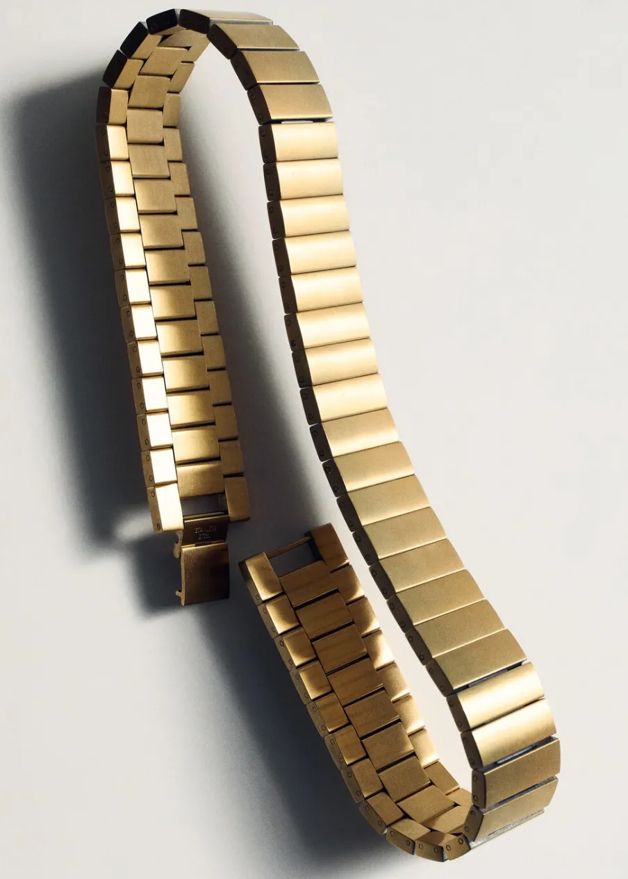 100% stal nierdzewna. W formie łańcucha. Model z ogniw. Metalowe zapięcie na zatrzask. Długość wynosi 33 cm. Wyłącznie online. Kolekcja Selection.