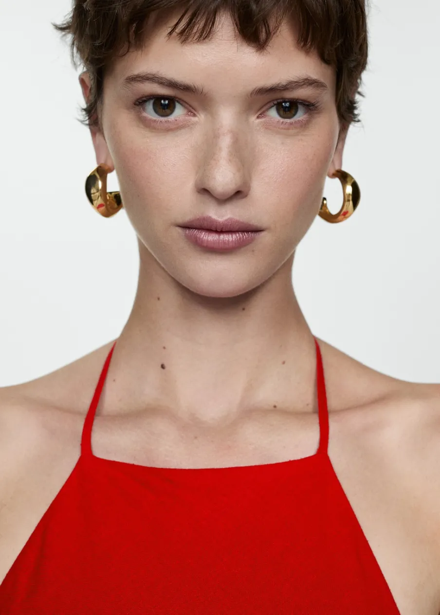 Krótki krój. Kształt koła. Metalowe zapięcie na zatrzask. Średnica koła wynosi 2,6 cm.