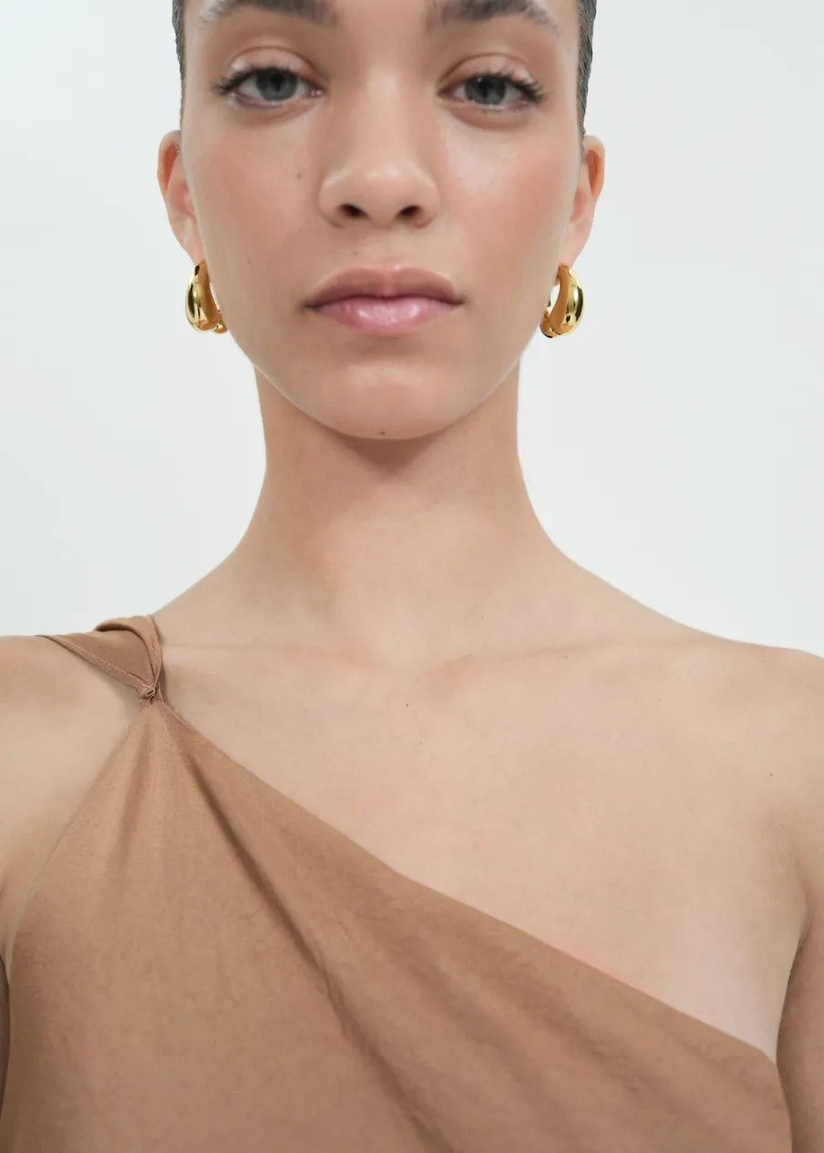 Metalowe zapięcie na zatrzask. Kolekcja wizytowa. Kolekcja Selection. Modelka ma 177 cm wzrostu i nosi rozmiar S/36. Kształt półkola.