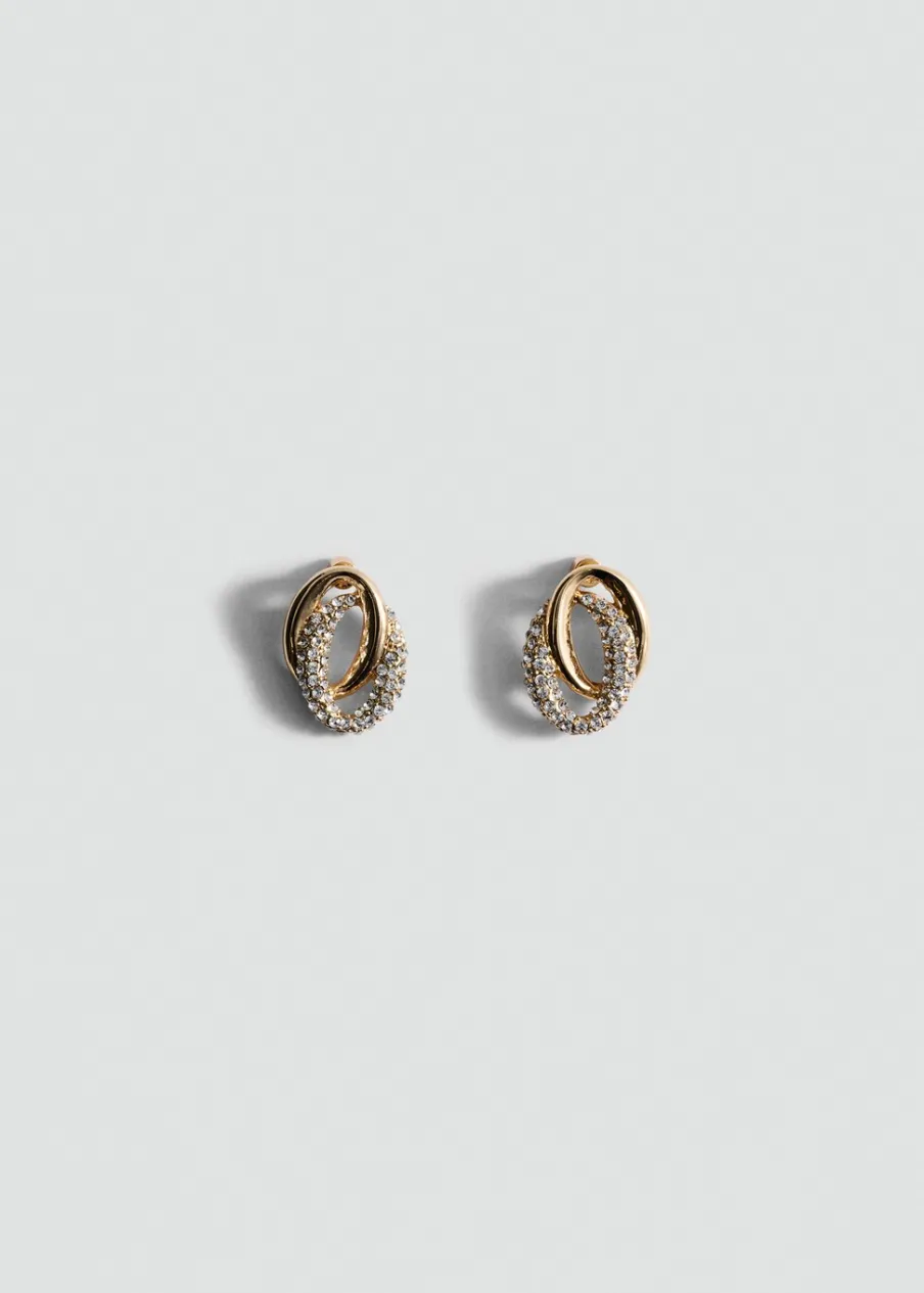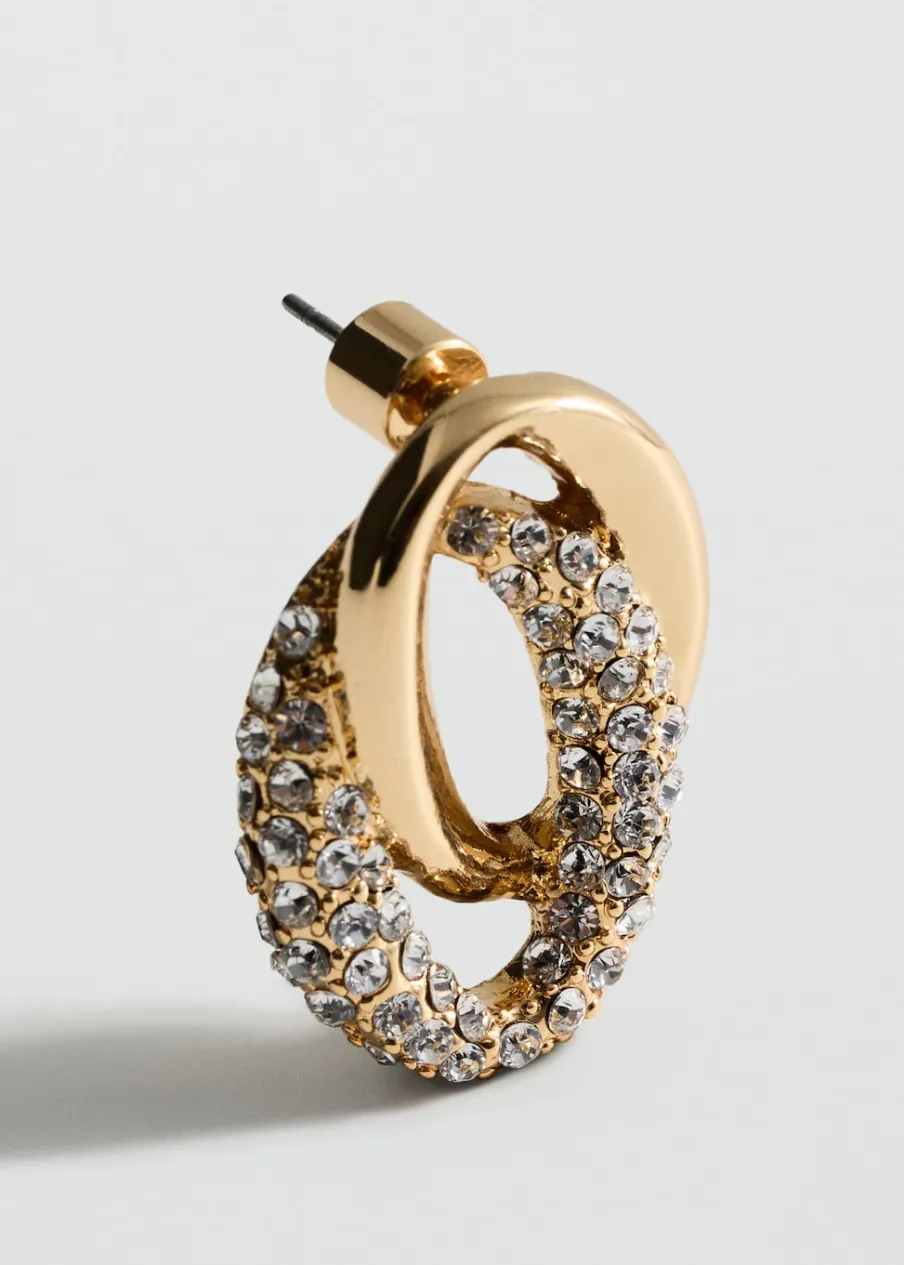 Kształt koła. Model łączony. Detal ze szlifowanych kryształków. Metalowe zapięcie na zatrzask. Splecione koła.