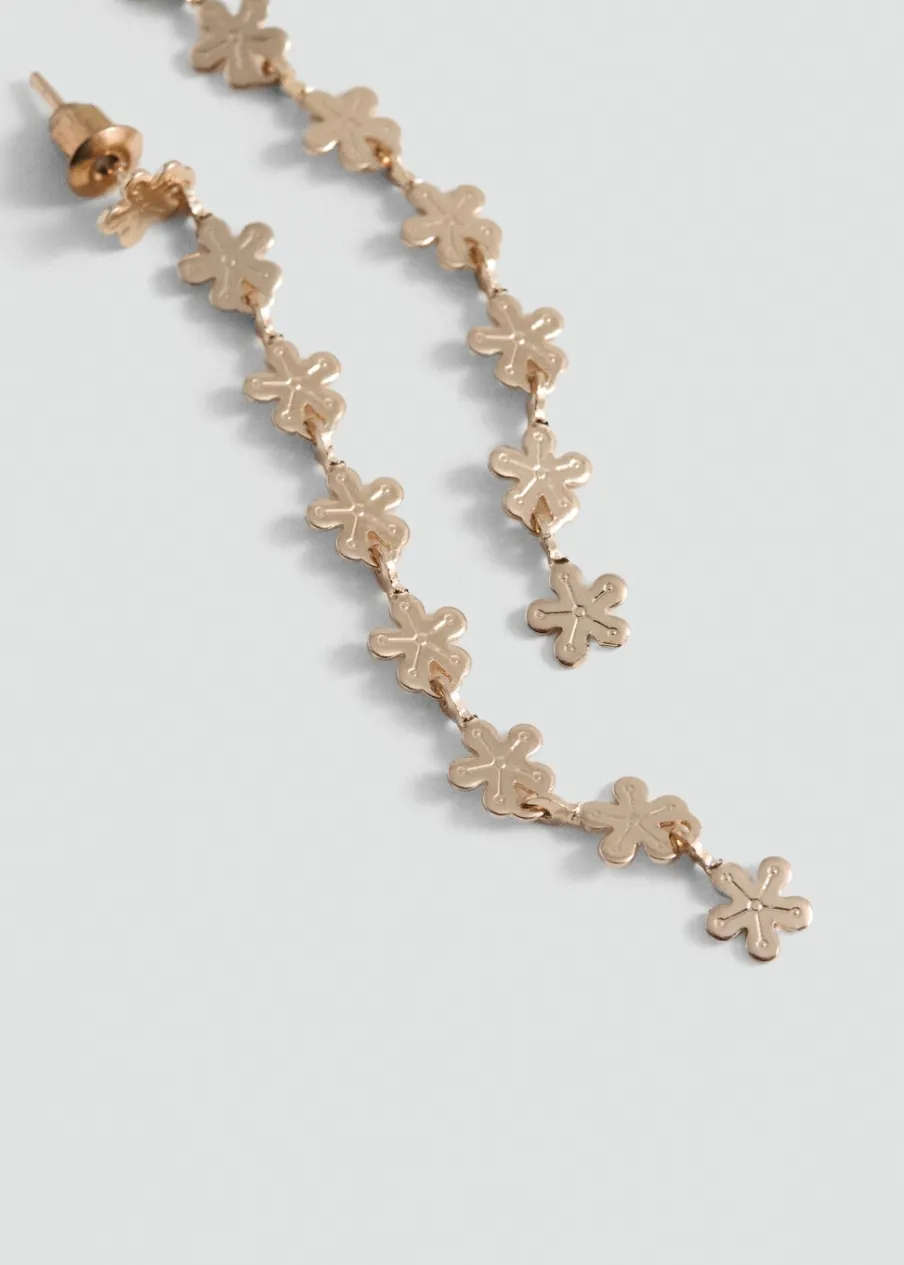Długie kolczyki. Kamienie w formie kwiatów. Metalowe zapięcie na zatrzask.