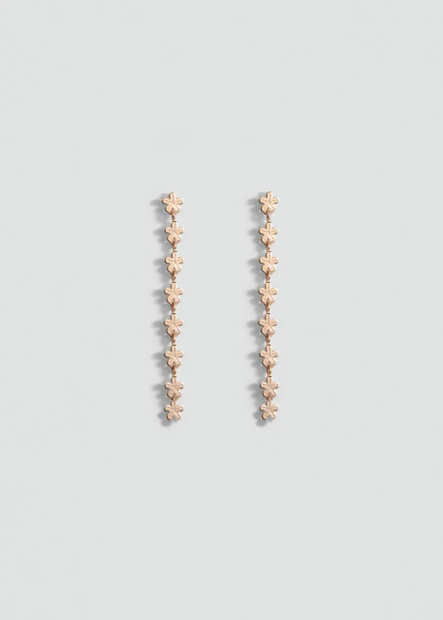 OpisDługie kolczyki. Kamienie w formie kwiatów. Metalowe zapięcie na zatrzask.