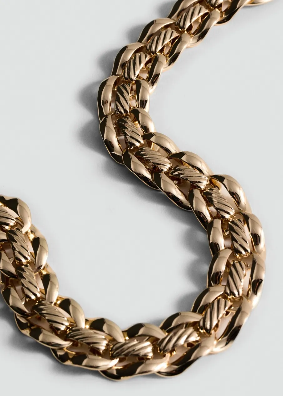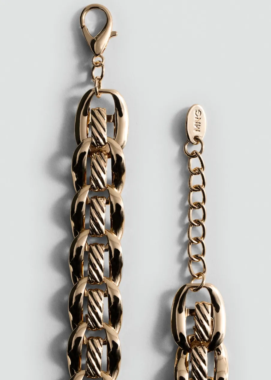 Model z ogniw. Szeroki fason. Zapięcie na łańcuszek i karabińczyk.