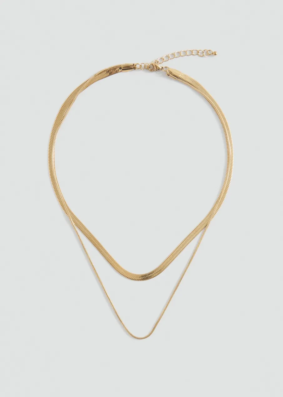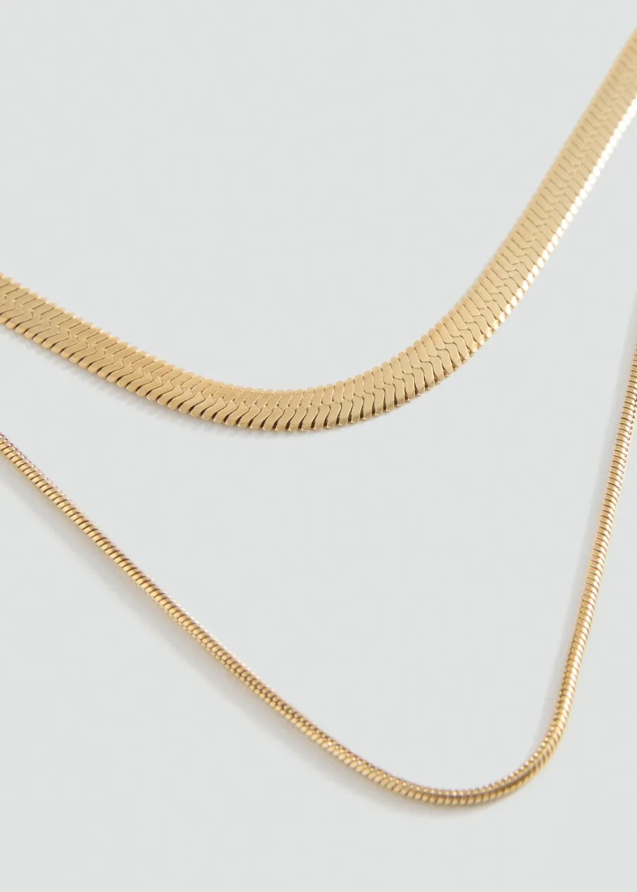 W formie łańcucha. Płaski łańcuszek. Zapięcie na haftkę.